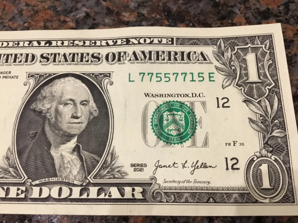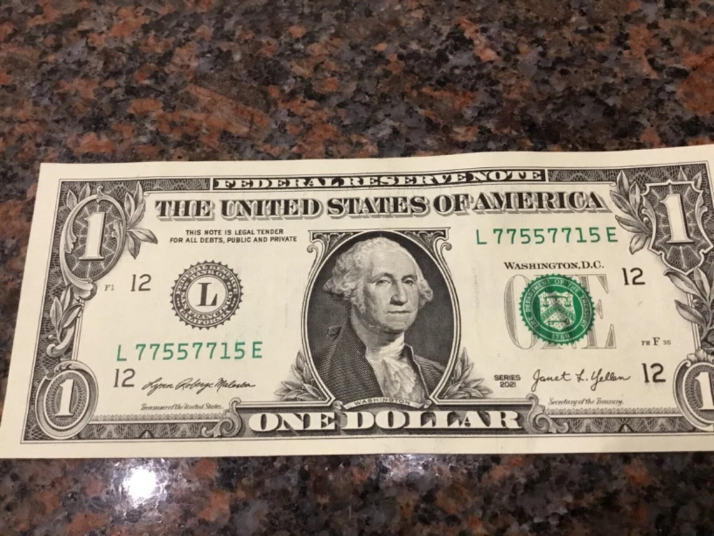 This is a $1 dollar bill from the 2021 Fort Worth Mint with a fancy serial number featuring triple pairs or a trinary pattern. The bill is circulated and uncertified, coming from the United States. The unique serial number adds collectible value to the banknote, making it desirable for currency enthusiasts or collectors.