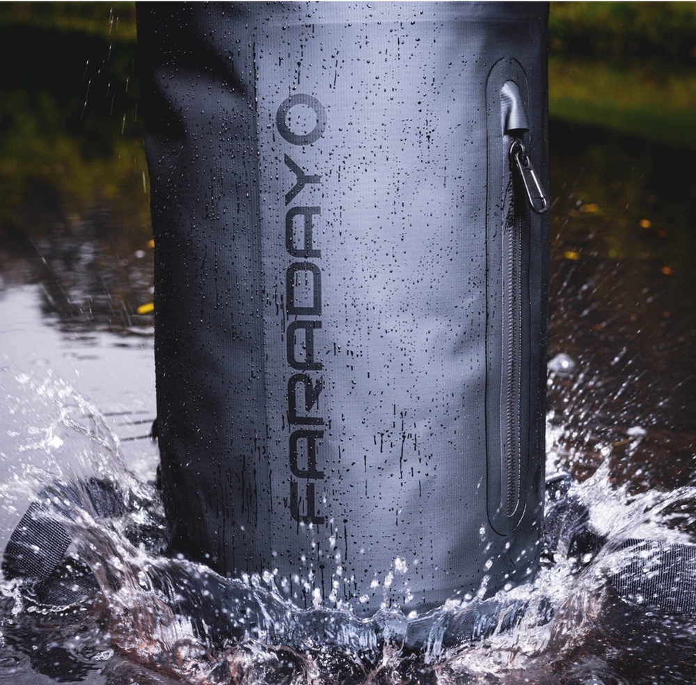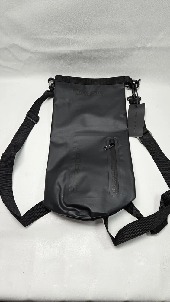 This listing is for one faraday defense 5 liter dry bag with front zipper pocket. The inner bag features EMF shielding. The bag is new and unused in package! Multiple available Fast Shipping! This FARADAY Dry Bag Sling Pack is perfect for transporting or storing your sensitive, high-value electronics and keeping them secure from wireless signals and water. Your valuables will be kept dry, away from the grid, and protected from the damage an EMP would cause your gear. The Sling Pack comes in three convenient sizes: 5L, 10L, 20L, & 30L. The roomy interiors fit laptops, tablets, radios and more. Lined with triple layers of CYBER NC, along with a tight roll closure, this bag provides 100% signal blocking protection and a water-tight seal. The resilient tarpaulin exterior is puncture resistant and water repelling. Strong, reinforced seams give this bag endurance and durability you can depend on. Two shoulder straps, multiple quick-release straps, and a water resistant exterior side pocket complete this minimalist design. Interior Dimensions: 5L: 7″ x 7″ x 12″ 10L: 7.75″ x 7.75″ x 14.5″ 20L: 9.75″ x 9.75″ x 16″ 30L: 11″ x 11″ x 20″ ❌ BLOCK SIGNAL: Blocking Bluetooth, Wi-Fi, Cell Signals (incl. 5G networks), GPS, and RFID, this bag keeps you secure. ❌ ENTERPRISE GRADE: Designed for military, police departments, forensic investigators, government and executive travel, personal data security, signal isolation, EMF reduction, and EMP protection. ❌ CYBER BLOCKING: With triple layers of specialized metal-plated fabric containing nickel and copper shielding elements, this bag dissipates signals from both exterior and interior sources. It effectively blocks communication of signals to and from your device with 85-90dB attenuation. The secure bag is sealed off with a double roll and clip closure. Dual-Clip Closure Roll-Top Closure Zip Side Pocket Tarpaulin Exterior Triple-Layer Faraday CYBER NC Fabric Water-Resistant Construction 2 Shoulder Straps