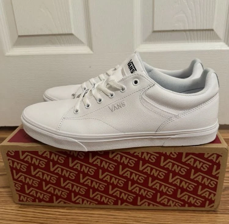 [FASH SALE] Vans Seldan Men's Leather Shoes White Medium D Sneakers NEW