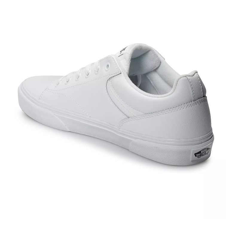 Performance/Activity: School, Skateboarding, Walking, Casual Closure: Lace Up Occasion: Activewear, Casual, Workwear Upper Material: Leather Outsole Material: Rubber Customized: No Vintage: No Cleat Type: Rubber Product Line: Vans Seldan Style: Sneaker Type: Athletic Model: Seldan Shoe Width: M Signed: No Season: Fall, Spring, Summer, Winter Color: White Lining Material: Leather Pattern: Solid Insole Material: Foam Department: Men Pronation: Neutral Features: Premium Leather Upper, Classic Skate Aesthetic, Neutral Pronation Support, Signature Waffle Outsole, Triple-White Design Brand: VANS Theme: Classic, School, Skate, Minimalist Shoe Shaft Style: Low Top