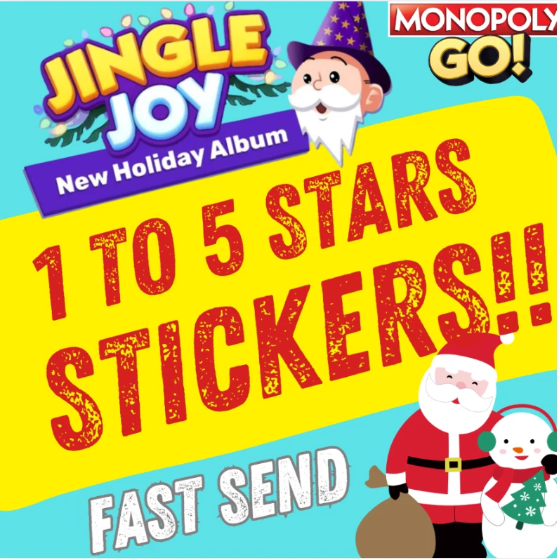 ⚑️ FAST DELIVERY 24/7⚑️MONOPOLY STICKERS GO JINGLE JOYπŸ”₯ 1 TO 5 STARS STICKERπŸ”₯