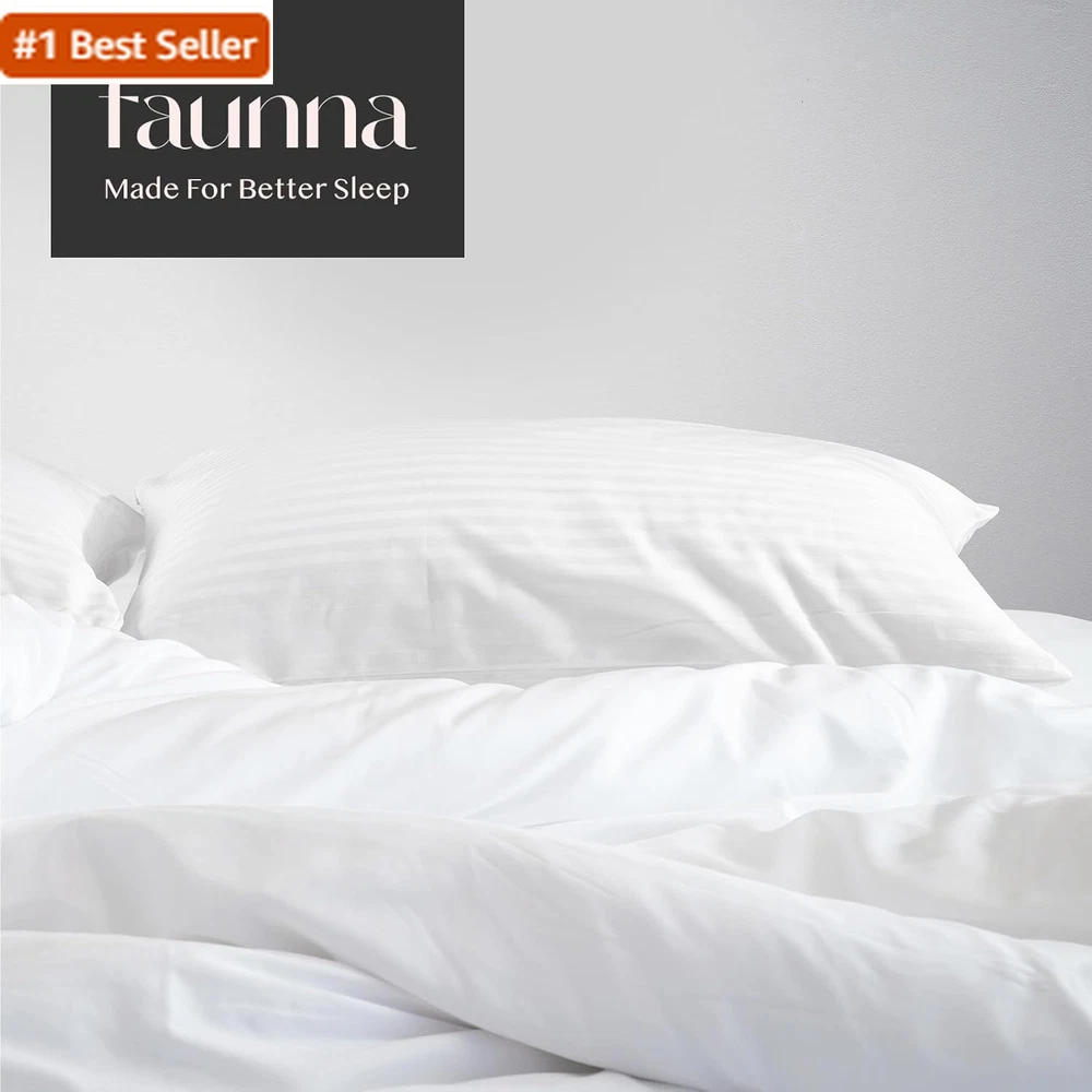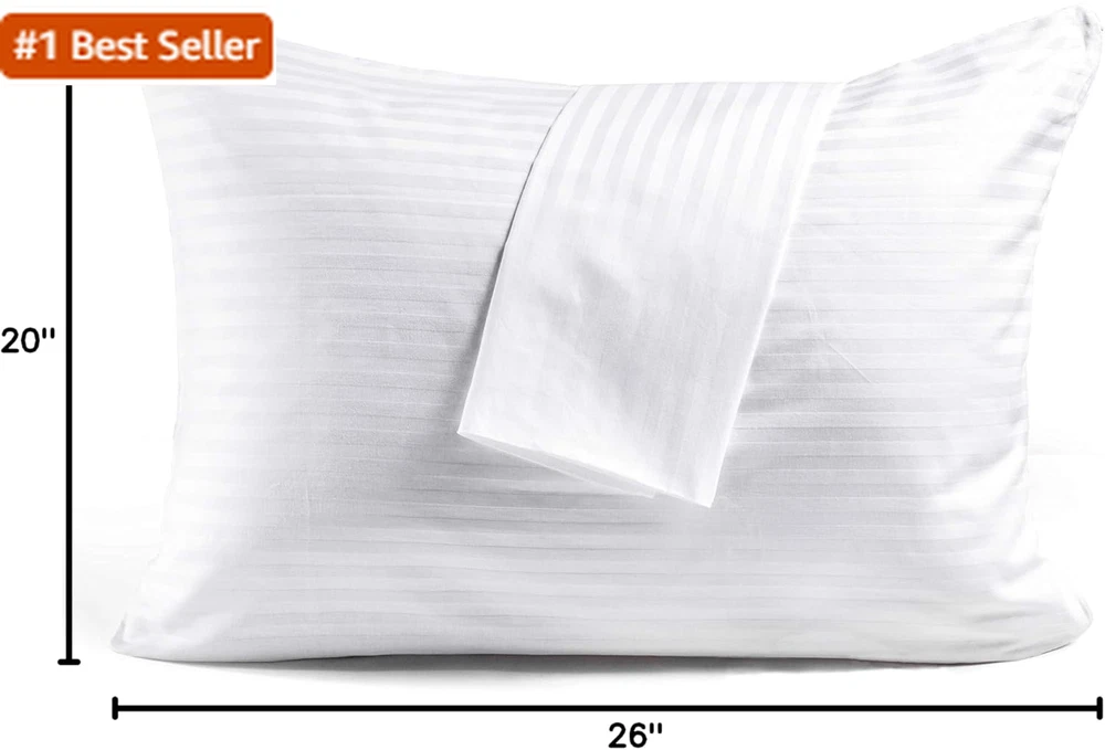 FAUNNA 600TC 100% Cotton Pillow Protectors, Standard Size (20X26), 4 Pack, Oeko-Tex Certified, Hotel Grade Pillow Cover with Silent Zipper, Zip up Pillow Cases, White Cotton Premium 100% Cotton & OEKO-TEX Certified:Crafted with 600-thread-count 100% cotton pillow case protector. FAUNNA's pillow covers are OEKO-TEX certified (No: 23.HCN.66795) for safe use by families, hotels, and those with special skin care needs. The ultra-soft fabric ensures our bed pillow cover breathable comfort and quiet while protecting pillows from daily wear. Durable Invisible Zipper Design:Features a silent, rust-proof zipper that seamlessly closes to keep pillows clean without bulkiness. This zippered standard size (20x26") pillow protector fit most bed pillows and maintain a sleek, hotel-grade appearance.The 600TC cotton resists pilling, ensuring durable protection for adults, kids, and guest bedding. Machine Washable & Long-Lasting Softness:Designed for convenience, these white protective pillowcase covers retain their high-quality texture even after repeated washes. The high-density 600TC weave delivers cloud-like softness, combined with breathable cotton fibers that regulate temperature. Our 20 inch by 26 inch pillow protector is machine washable without pilling or fading, retaining whiteness even after 50+ washes. Versatile Sets for Every Need:Choose from set of 2, 4, or 6 pillow cover in standard size to match your home, hotel, or nursery requirements. Each set includes identical white striped pillow protector for a cohesive look across multiple beds. FAUNNA Quality Assurance :Backed by a 1-year warranty, our cotton pillowcase protector with a zipper combines functionality with elegance. Upgrade your bedding with FAUNNA's hotel-grade quality. Product Description 1 High Quality 2 100% Cotton 3 Hidden Zipper Can I wash the pillow protector in a washing machine? Absolutely! Our pillow protector is designed for hassle-free maintenance. lt is machine washable and dryer safe on low heat. Does the material of the pillow protector breathe well? I tend to get hot when I sleep. Yes, Faunna pilow protectors are made with breathable fabric that promotes air circulation. it is specifically designed to keep you col and comfortable throughout the night, avoiding any heat buildup. I noticed the pillow protector shrunk slightly after washing. Is this expected? Yes, slight shrinkage upon the first wash is expected. We design our protectors sightly larer to accommodate this,.For optimal care, wash in cold water and tumble dry on low. How does the pillow protector stay in place? Does it have a zipper? Yes, our pillow protector includes a high-quality zipper that ensures a snug fit around your pillow. This design helps keep the protector securely in place , regardless of how much you might move during the night. Item model number Standars-4P Item Weight 10.2 ounces Number of Items 4 Unit Count 4.0 Batteries required No Thread Count 600 Brand FAUNNA Material Cotton Country of Origin China Fabric Type Cotton Volume 558933 Milliliters Color White Manufacturer Restino Number of pieces 4 Product Dimensions 26"L x 20"W Product Care Instructions Machine Wash Size Standard Shipping Fast shipping is very important for us. Our standard US shipping service is FREE. Your order will be shipped within 2-3 business days upon full payment received. Your order will be delivered within 2-3 business days after the handling time. We only ship to the confirmed PayPal address. We reserve the right to cancel any order for any reason at any time. We are not responsible for undeliverable addresses. Returns and payment We offer a 30 days return policy from checkout winning date. We allow only PayPal as payment method FeedBack Your feedback very important to us, after you get your package and you are satisfied with our service please leave us positive feedback If you have any problem with your order / any questions please before leave any type of feedback For any questions, using eBay contact system Please visit our eBay store to check out other items for sale! Thank you for shopping at our store.