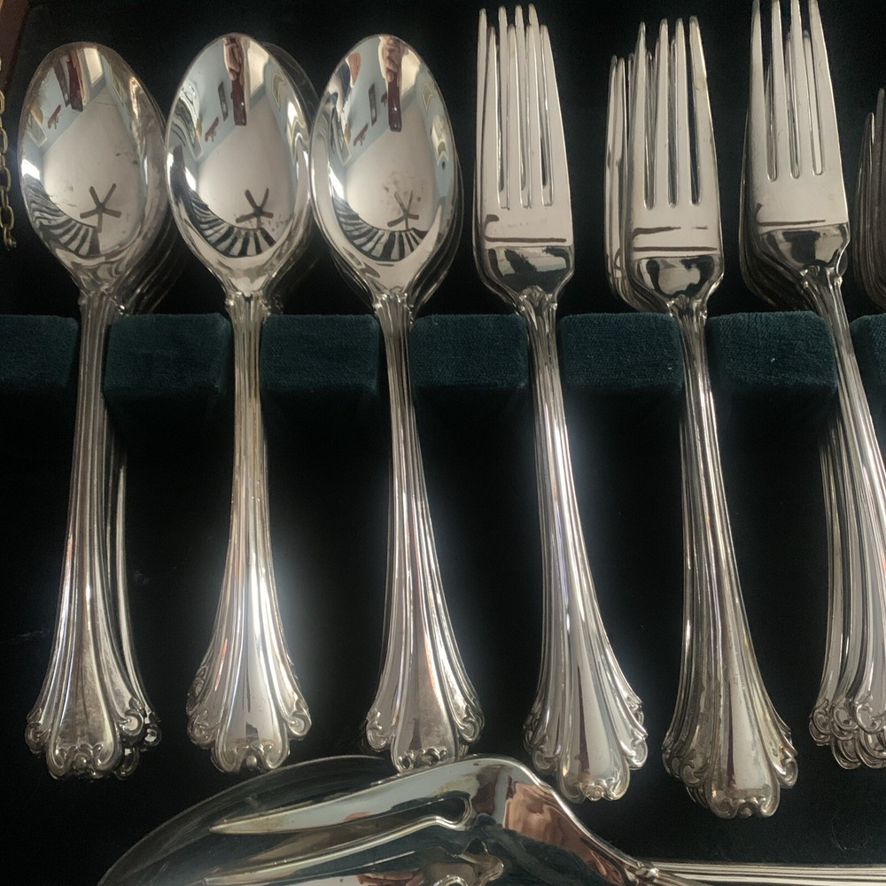 Service For: 16 Occasion: All Finish: Glossy Brand: Rogers Number of Items in Set: 84 Country/Region of Manufacture: China Set Includes: Fork, Knife, Serving Set, Spoon Color: Silver Material: Silver Plated Type: Set Handle Material: Silver Plated Style: Traditional Care Instructions: Machine Washable up to 140°F Model: FB Rogers AMERICAN CHIPPENDALE