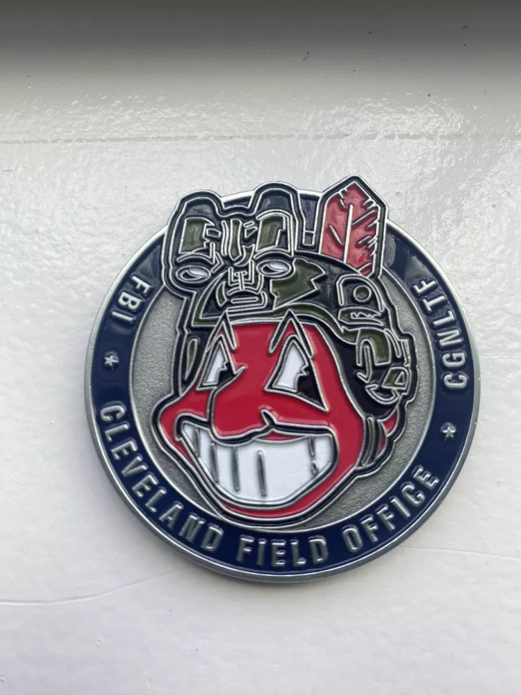 FBI Cleveland Field Office Cartel Gang Narcotics & Laundering Task Force Challenge Coin. Coin has the former Cleveland Indians mascot with NODS on the front. The back has the badges of the FBI, DEA, USMS, IRS and Cleveland PD on it. Super rare and great design!