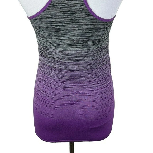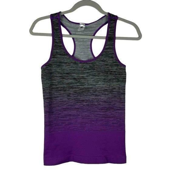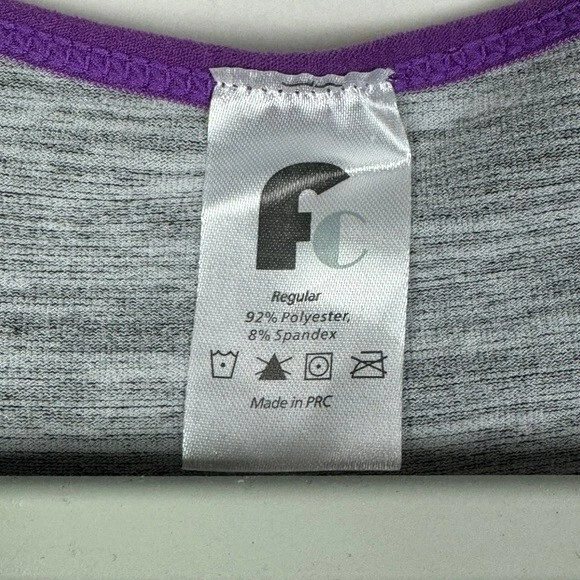FC Women's Regular Purple Gray Athletic Sports Racerback Stretchy Tank Top Great Condition. No rips, flaws, or stains. Smoke free home. 92% Polyester / 8% Spandex Size: Regular Measurements are approximate Pit to Pit: 15" Length: 24" Hem across: 15" #3384