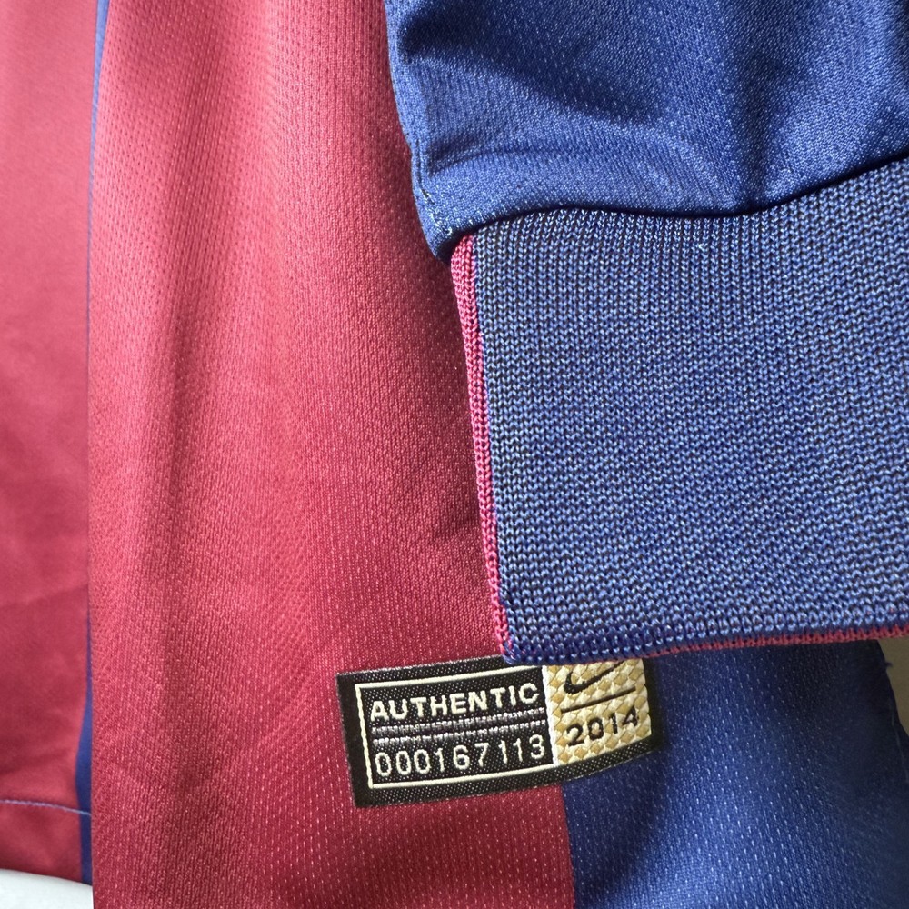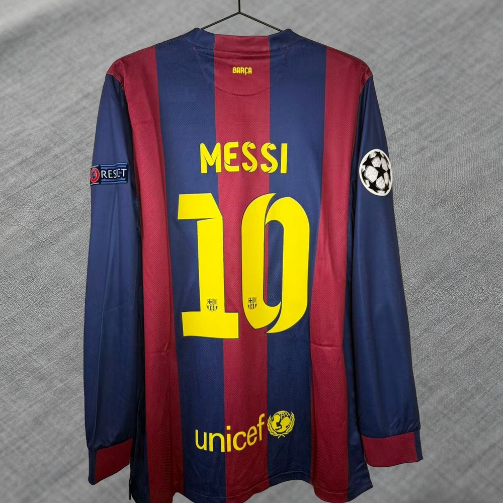 The FC Barcelona 2014-15 Home Long-Sleeve Jersey – Messi #10 is an officially licensed soccer jersey featuring the iconic player, Lionel Messi. This jersey, designed for men, showcases the team's colors and is perfect for fans of FC Barcelona looking to show their support. Made with quality materials and a capacity of 15 oz, this jersey is a must-have for any soccer enthusiast.