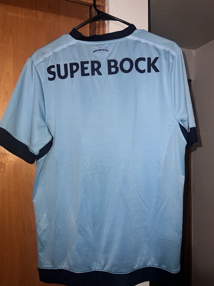 Show your support for FC Porto with this authentic 17/18 third kit shirt. Made from high-quality materials, this shirt is perfect for any soccer fan. The blue color and Porto team logo make it an officially licensed product. This medium-sized shirt has a capacity of 10 oz and is designed for men. Whether you're watching the game or playing it, this shirt is a must-have for any FC Porto fan. Made in Jersey, this shirt is durable and comfortable to wear. It's perfect for showing your team spirit at the next soccer game or even wearing it on a daily basis. Get yours now and show your support for FC Porto!