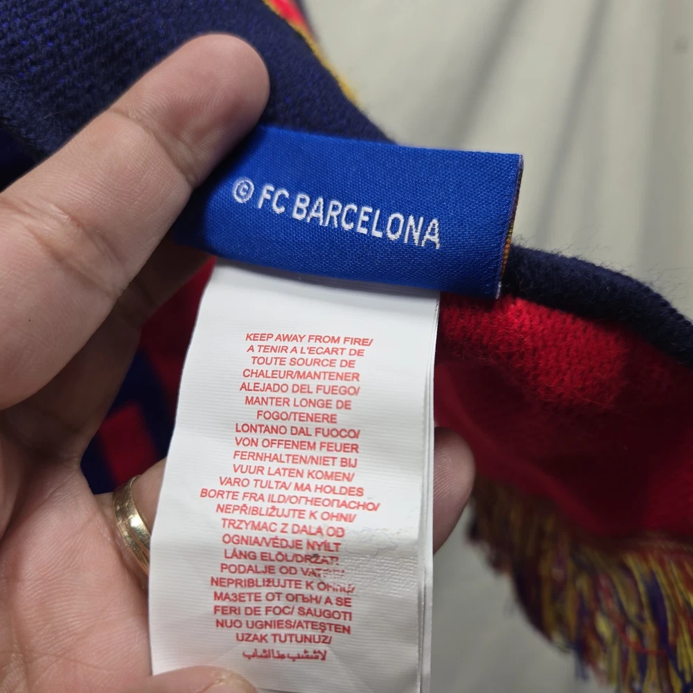 Team: FC Barcelona Color: Multi-Color Brand: Barcelona Country of Origin: Spain Officially Licensed: Yes Product: scarf Sport: Soccer Gender: Unisex Adult Size: L
