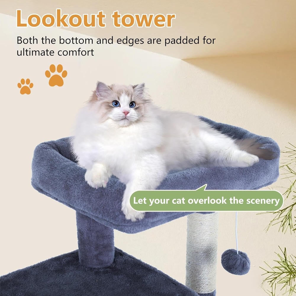 FDW Cat Tree for Indoor Cats 36 Inches Tower Multi-Level Dark Grey Product Details Item Weight: 21 pounds Manufacturer: FDW Item model number: FDW Cat Tree Item Package Dimensions L x W x H: 24 x 16 x 8 inches Item Dimensions LxWxH: 23 x 15 x 36 inches Item Weight: 21 Pounds Brand Name: FDW Target Audience Keyword: Cats Directions: cat tree Country of Origin: Vietnam Model Name: for Indoor Cats Color: Dark Grey Material: Particleboard, Plush, Sisal Age Range Description: Kitten Care Instructions: Hand Wash Only Number of Items: 1 Style: Modern Breed Recommendation: Small Breed Sizes Included Components: cat tree Specific Uses for Product: Jumping Product Dimensions : 23 x 15 x 36 inches; 21 Pounds Item model number : FDW Cat Tree Manufacturer : FDW Product Dimensions: 23"L x 15"W x 36"H Specific Uses For Product: Jumping Recommended Uses For Product: Indoor 【Durable Sisal Scratching Posts】 Your cat's want to scratch is satiated and your furniture is kept secure with two scratching posts wrapped in natural sisal rope. The sisal texture encourages healthy scratching behavior and is perfect for maintaining healthy nails and paws.Cat Tree Cat Tree Cat Scratching Post Cat Tower for Indoor Cats 【Stability is Always Priority】 Whether your cat is an adult lazy cat or a charming kitten, it may leap and play securely in our three-point mechanically supported cat cage with a laminate floor. It also has sturdy cat posts.Cat Tree Cat Tree Cat Scratching Post Cat Tower for Indoor Cats 【Interactive Dangling Ball】There's a bell-equipped hanging ball supplied to keep your cat occupied for hours on end. It keeps them occupied and stimulates their wits by satisfying their playful curiosity and innate hunting impulses.Cat Tree Cat Tree Cat Scratching Post Cat Tower for Indoor Cats 【Easy Assembly for You】 This cat tree comes with clear and concise instructions, making assembly a breeze. You'll have your feline friend's new entertainment center up and running in no time.Cat Tree Cat Tree Cat Scratching Post Cat Tower for Indoor Cats 【Space-Saving Design】 The 36" height, 23" length, and 15" breadth of this cat tree gives your cat plenty of area to play without taking up too much valuable floor space in your house.Cat Tree Cat Tree Cat Scratching Post Cat Tower for Indoor Cats Cat Tree for Indoor Cats Every cat's desire is satisfied by our cat tree. Luxurious seating areas with expansive views over their realm are available on plush, carpeted platforms. Unwanted claw marks on your furniture will be prevented as stubborn scratches are diverted to the many sisal scratching posts. Cozy condos offer a secret hideout for naps or watching the world from a safe distance. Ramps and stairs enable climbing excursions that satiate their innate curiosity, while dangling toys keep active paws occupied. This simple-to-assemble cat tree, made of premium materials for enduring enjoyment, is the ideal addition to any house and will keep your feline companion happy and occupied for many hours. Cat Tree Cat Tree Cat Scratching Post Cat Tower for Indoor Cats Cat Tree for Indoor Cats