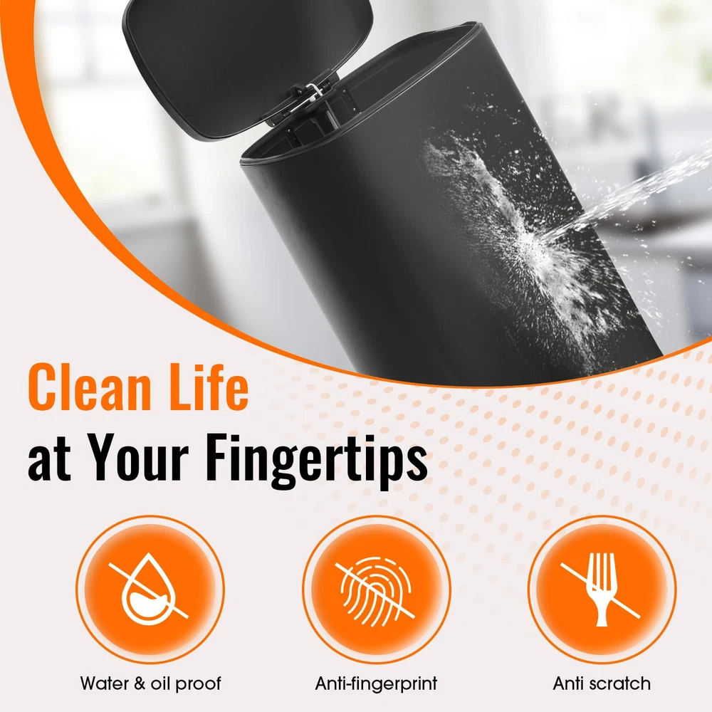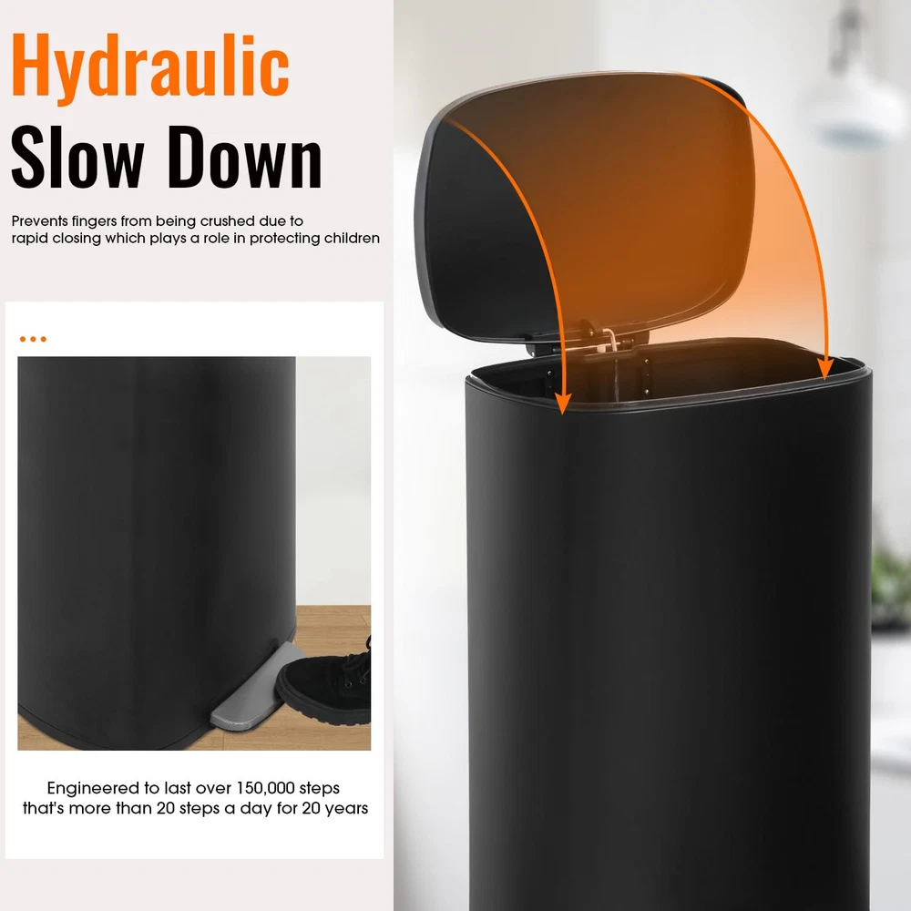 ★『STRONG &FASHIONABLE APPEARANCE』Our kitchen trash can is made of high quality stainless steel with a stainless steel wire drawing surface. The oval body with a sloping lid makes the garbage can look even more cool and beautiful. Buying our stainless steel trash can is a great deal for you. ★『MUTE DESIGN』Conventional』 Garbage can in use will make a lot of noise, how our kitchen trash can use slow down technology, open and close will not make a lot of noise, you can rest assured that you can use, do not worry about disturbing the rest of the family. So putting stainless steel trash can in the corner of your bedroom will make a good choice. ★『13 GALLON ULTRA-LARGE CAPACITY』 13 gallons can absolutely meet your daily use, in the kitchen table next to a kitchen trash can, you will be more convenient to deal with kitchen waste. The regular 13-gallon garbage bag in the supermarket can be used in our stainless steel trash can, and it's kind of you to use a bigger bag. The lid of the garbage can is removable, it’s convenient for you to put in and take out the garbage bag. ★【EASY TO CLEAN & ISOLATED SMELL 】Our kitchen trash can is treated with stainless steel wire drawing, which makes it very convenient to clean up the stainless steel trash can. The dirt on the surface of the garbage can be easily removed with only a rag. If you don't want the whole house to smell like you don't like, you need to make sure that the lid of the bathroom trash can is always closed, and good sealing makes this possible. ★【SUITABLE FOR VARIOUS PLACES】 Our stainless steel trash can be used in all places where we can use it. It's big, beautiful and the price is right. Why not to buy one ? The kitchen, the bedroom, the living room, the study, the activity room, even in your kid's cabin, I think it's all right to put one of our kitchen trash can .Quality assurance, if garbage can have any quality problems, you can contact us the first time, we will give you a satisfactory answer.