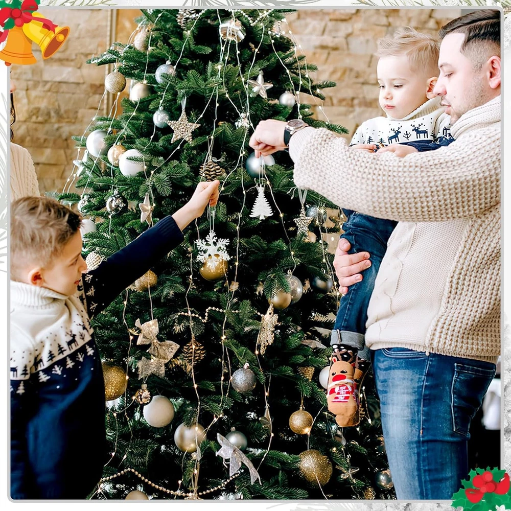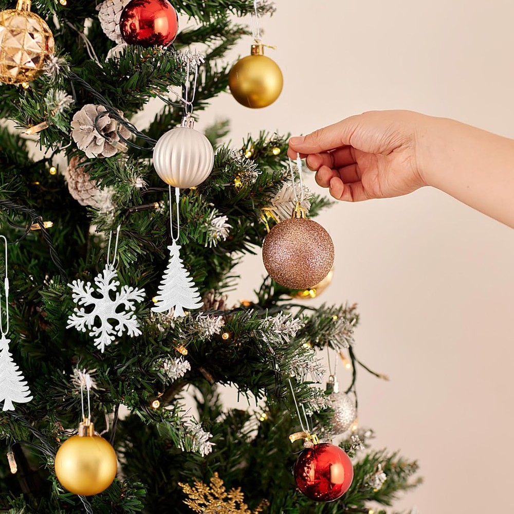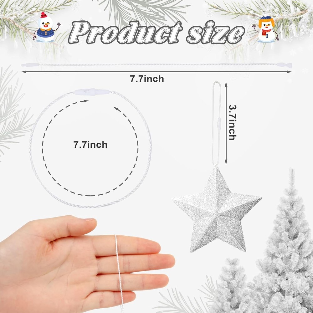 FEBSNOW 500Pcs Christmas Ornament Hangers, String with Snap White Product Details Product Dimensions: 7 x 7 x 0.5 inches Item Weight: 3.04 ounces Manufacturer: FEBSNOW Country of Origin: China Item model number: 7504 Fabric Type: Polypropylene Perfume: Unscented Number of pieces: 500 Batteries required: No Included Components: No Polypropylene Large Quantity: Package comes with 500 piece white ornament hanger strings ,ensuring you have more than enough for all your decorative needs,you'll have everything you need to hang ornaments, garlands, and more, good for adding a festival touch to your holiday decor Strong and Sturdy: Our Christmas ornament strings are made of quality polyester, ensuring the cords are lightweight, soft, not easy to breaking and fading.The snap fastener is made of quality plastic,reliable, sturdy and reusable, serve you for a long time.Ideal for decorating your Christmas tree or hanging ornaments around your home Practical Size: These ornament hooks are designed with a suitable size of 7.9 inches in length and 0.5 mm in diameter, ensure a secure attachment.The connecting ring has a diameter of 1.9 mm, allowing you to easily hang your Christmas decorations without the need for manual knotting.The buckle design offers flexibility for adjusting to different ornament sizes and shapes Simple to Use: The convenient ornament cords are designed for easy and quick installation, featuring plastic snap fasteners that securely hold your decorations in place without the need for tying knots.The efficient design saves you time and effort, allowing you to decorate your home quickly and effortlessly Versatile Application: Our ornament hangers are not only suitable for Halloween and Christmas decorations but also for hanging ornaments for other occasions such as weddings, parties, and events.The ornament hooks are ideal for daily use as well, such as gift tag, price tag, bookmarks, jewelry crafting, DIY project, and more