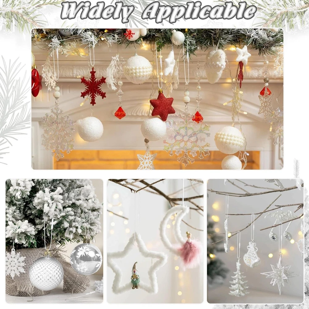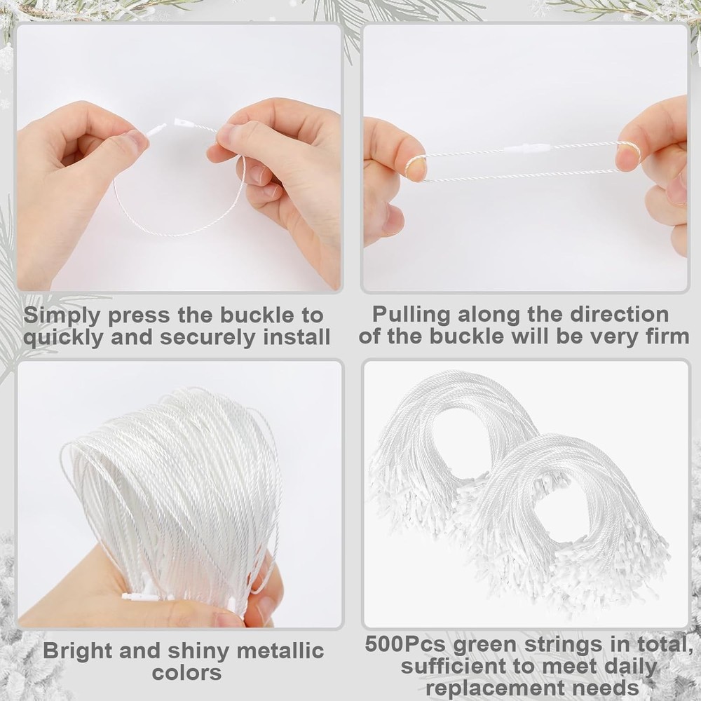 FEBSNOW 500-Piece Snap-On White Christmas Ornament Hangers with String