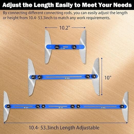 UNIVERSAL STAIR TREADS GAUGE TEMPLATE TOOL - Stair tread template tool enables the treadle installer to measure the length and angle easily and accurately without a measuring tape. Easy to use and save plenty of time for measurement. No more shoddy stairs after easy operation. ADJUSTABLE ANGLE - Stair measurement layout tool works well to measure stair treads, risers and shelves. The adjustable angle is 0°- 300°, you can adjust the angle, length or height according to your need. Shelf layout tool & stair tread jig can be widely used in many woodworking environments, specially designed for laying out wooden stair treads, wooden floors, closet and windowsill. Nice choice for DIY woodworking. PREMIUM QUALITY - Stair jig tool are made of superior aluminum alloy, durable and wear resistant. The surface is treated by anodizing to prevent discoloration in high-temperature environments or wet condition. The scale is etched by laser for better accuracy. Bolts are portable and reusable. Complete kit for direct fit! EASY TO USE - Adjust the 4 knobs and you can change the length of the stair measuring tool easily and secure the tool. Package includes two sets of extension parts with a length of 16 inches (No.A), 12 inches (No.B) and 8 inches (No.C). You can freely combine according to your needs. while measuring the length and width of the wooden board, the ruler on both sides of the stair tread tool can also change the angle to meet the shape of the stair corner. BUY WITH CONFIDENCE - Shelf scribe tool for stairs comes with 1-YEAR Warranty, if you have any questions while using this stair tread with scale to measure the stairs, risers, shelves, windowsills, closets and cabinets, please don't hesitate to contact us for a replacement. We will reply your email as soon as possible!