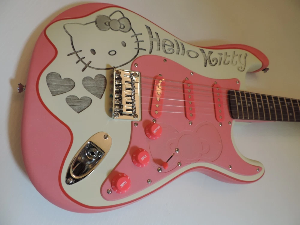Please note : Guitar ships within 20 Business Days. Custom Fender Stratocaster Hello Kitty Special Customized Strat. Customized by DelDuca Custom Classics , in Sugar Hill , Georgia.. Fender vintage 70's re issue Pickups, 5 way switchin g. Hand Engraved in the Wood, No Stickers or Decals . Hand Engraved Pickguard. Guitar Only As Shown. Please take The time To See All Pictures As they Are Part Of The Description Sold as Is and As Shown. No returns. Paypal. PLEASE NOTE , GUITAR SHIPS WITHIN 20 BUSINESS DAYS Worldwide Shipping.