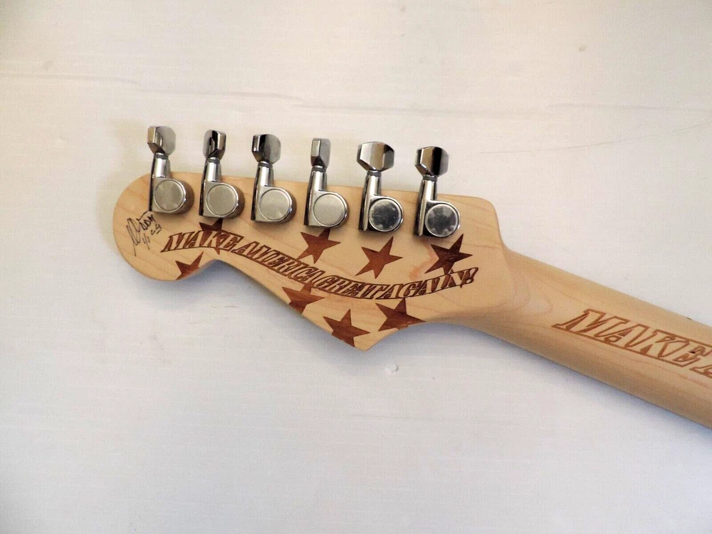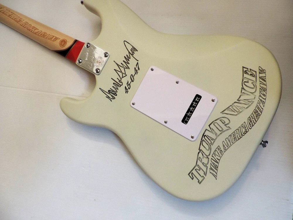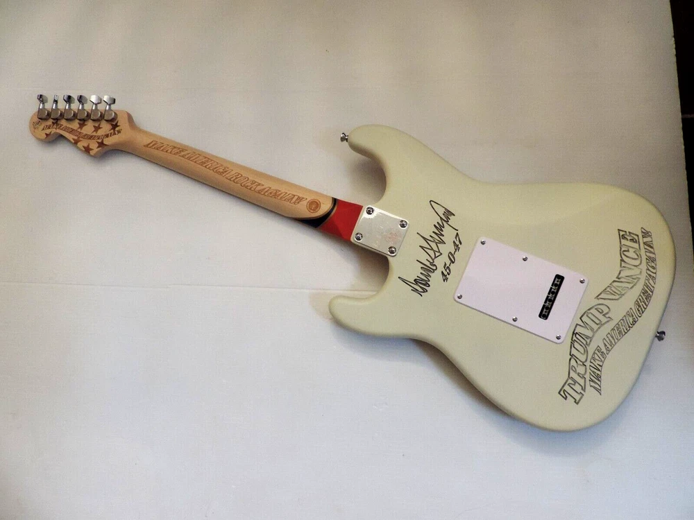 MADE TO ORDER SHIPS WITHIN 15 BUSINESS DAYS Custom Fender Stratocaster Trump - Vance , 45-0-47 Make America Rock Again Tribute a DDCC Custom Strat. Customized by DelDuca Custom Classics . Entirely Hand Engraved in The Wood , No Decals or Stickers. Fender 70s Re Issue Pickups and 3 Way Switching. All Maple neck / Med Jumbo Frets , No Wear. Custom Off White Satin Finish. Includes Padded Bag. Ships Worldwide. Please see all photos As They Are Part Of The Description. No Returns. MADE TO ORDER, SHIPS WITHIN 15 BUSINESS DAYS ALSO AVAILABLE FENDER TELECASTER TRUMP MAKE AMERICA ROCK AGAIN AS PRE ORDER,