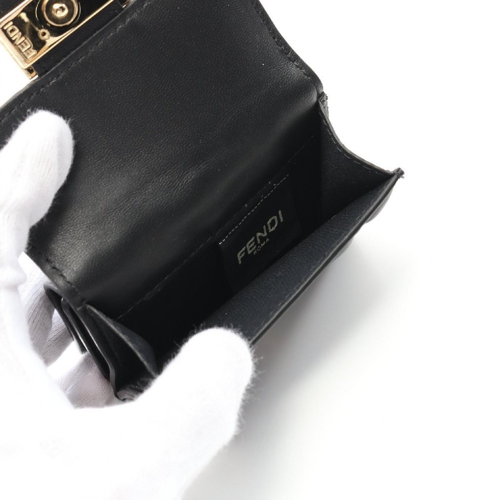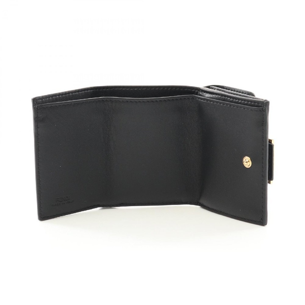 FENDI BAGUETTE Leather Tri-Fold Wallet 498222 Black