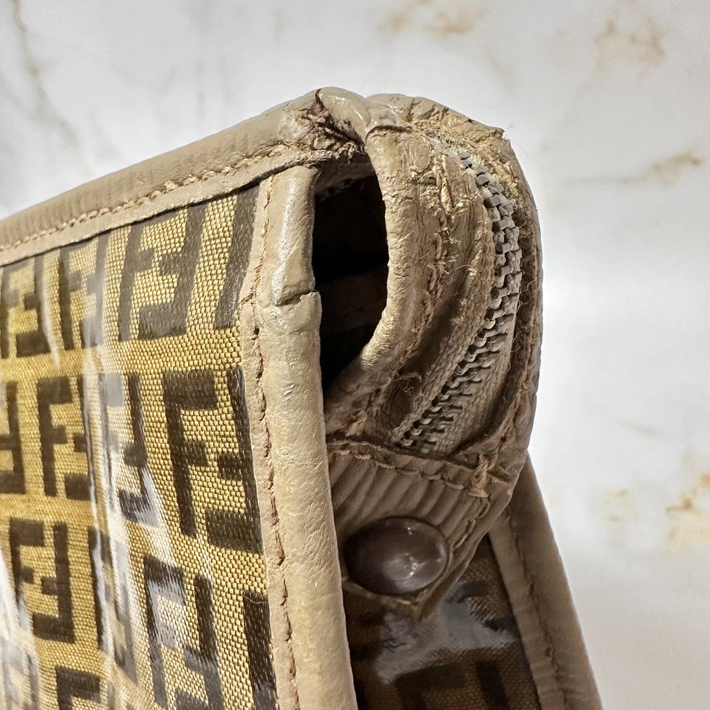 FENDI Clutch Bag Vintage PVC Zucca Small Size Authentic Thank you for visiting our store! We hope you enjoy shopping here:) ★Note★ Please refer to the photos and descriptions carefully, as judgements of rank are our subjectivity. Also, please contact us if you have any questions. Description ■ S erial No. There is no code notation because it is a vintage model. *The items I sell are sourced from markets that specialize in luxury brands with trust. All Brand items have been appraised by an expert. ■Size Width approx. 9in(23cm) Height approx. 5.5in(14cm) Depth approx. 2.9in(7.5cm) ■Appearance / Condition Rank B There are some cracks in the leather at the edge. There are corner rubs and missing threads. There are wrinkles from use. The edge wears were repaired externally. *Please check photos. ■ Inside / Condition Rank B No stickiness due to aging. There are wrinkles from use. *Please check photos. ■Functional There is no problem in use. ■Color Brown *Actual Colors may slightly differ depending on your PC monitor and lighting environment. ■ View of Rank S - New Brand new with tags. SA - UNUSED Unused may have insignificant scratches or slight discoloration due to storage or display. AA - MINT Unused or barely used, may have some insignificant scratches or stains. A - Excellent Used item, may have insignificant scratches and signs of usage. AB - Very good Used item, has some insignificant scratches and other signs of usage. B - Good Used item, has some scratches, stains and obvious signs of usage. BC - Decent Item has scratches, discoloration and other noticeable signs of usage. C - Usable Item has scratches, discoloration and other heavy signs of usage. D - Asis - For Repair Item has heavy damages that would require repair. In the case of overseas shipping, products are often handled in a messy manner. Please rest assured that we have a sturdy package in our shop. Also, since it may take some time before arrival in countries with high humidity, we also include a desiccant (silica gel) at the time of shipment. Payment We accept Maneged payment Payment is due within 5 days of the auction end. We will ship the item 3 business days after your payment clears. Shipping We send a product by Japan Post or Fedex . We attach the tracking number. Please bid it without worrying. Shipping is only available to the address registered in Paypal. Please note that any address not registered in Paypal is not acceptable to ship. Shipping is available from Monday to Friday. Weekends are not available because post office is closed. Returns ★Notes on Returns★ Returns will only be accepted if the item is different from what is described in the product description. As a rule, returns, refunds, and exchanges are not accepted. Shipping charges will not be refunded. If you received free shipping service when you placed your order, you will be charged for the restocking fee and the shipping fee from Japan to the buyer. The shipping fee will be deducted from the refund amount. In the unlikely event that a directly managed or branded store determines that an item is fake, we will take the necessary recall measures. Just provide us with the information that clearly shows that the item is fake. Otherwise, we will not be able to make a decision. International Buyers Please Note: Import duties, taxes, and charges are not included in the item price or shipping cost. These charges are the buyer's responsibility. Please check with your country's customs office to determine what these additional costs will be prior to bidding or buying. These charges are normally collected by the delivering freight (shipping) company or when you pick the item up -do not confuse them for additional shipping charges. We do not mark merchandise values below value or mark items as 'gifts' -US and International government regulations prohibit such behavior.