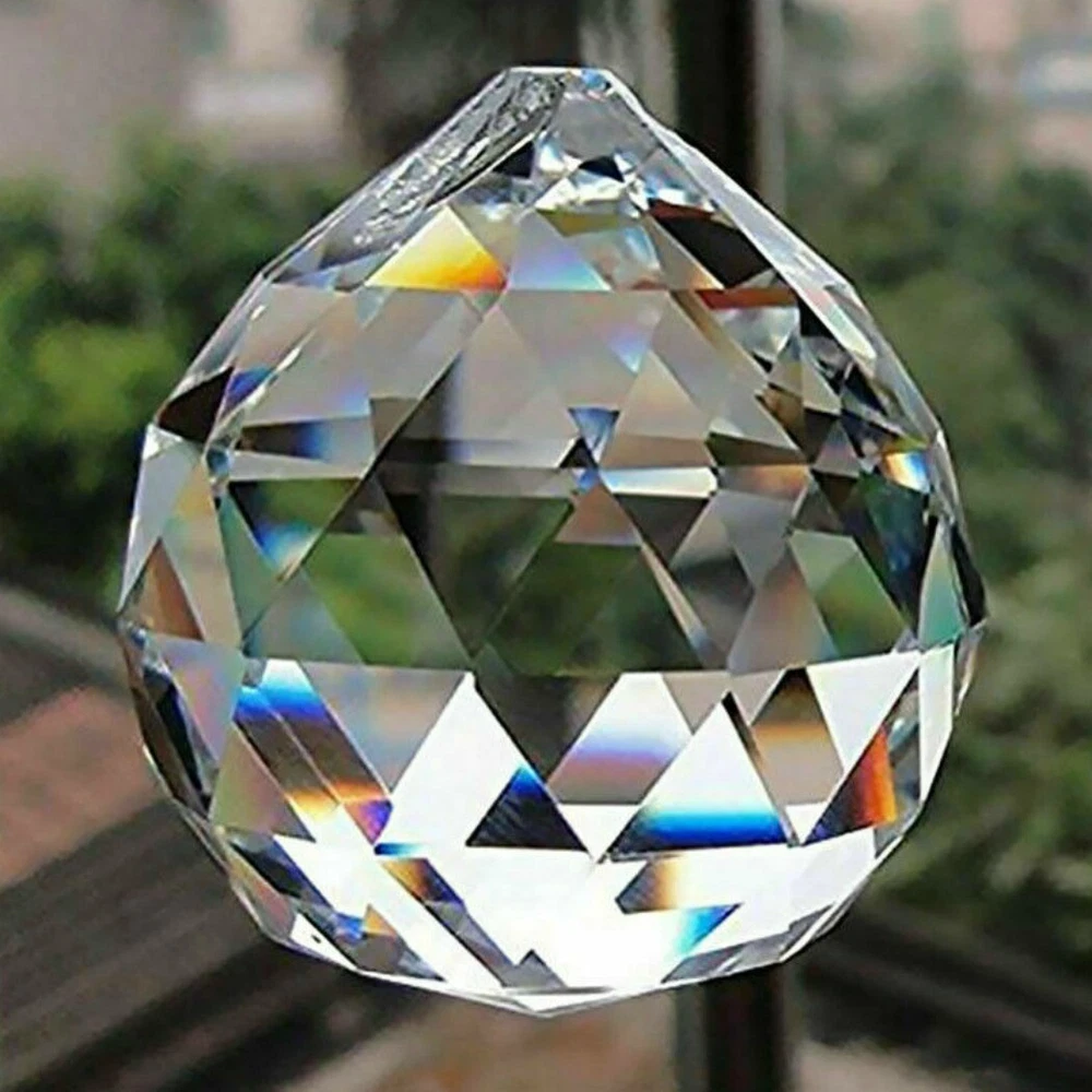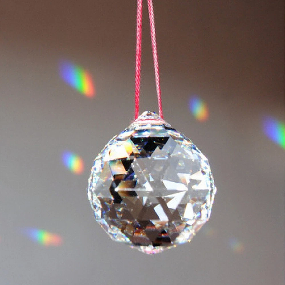 FENG SHUI HANGING CRYSTAL BALL Clear Faceted Sphere Sun Catcher Rainbow Prism
