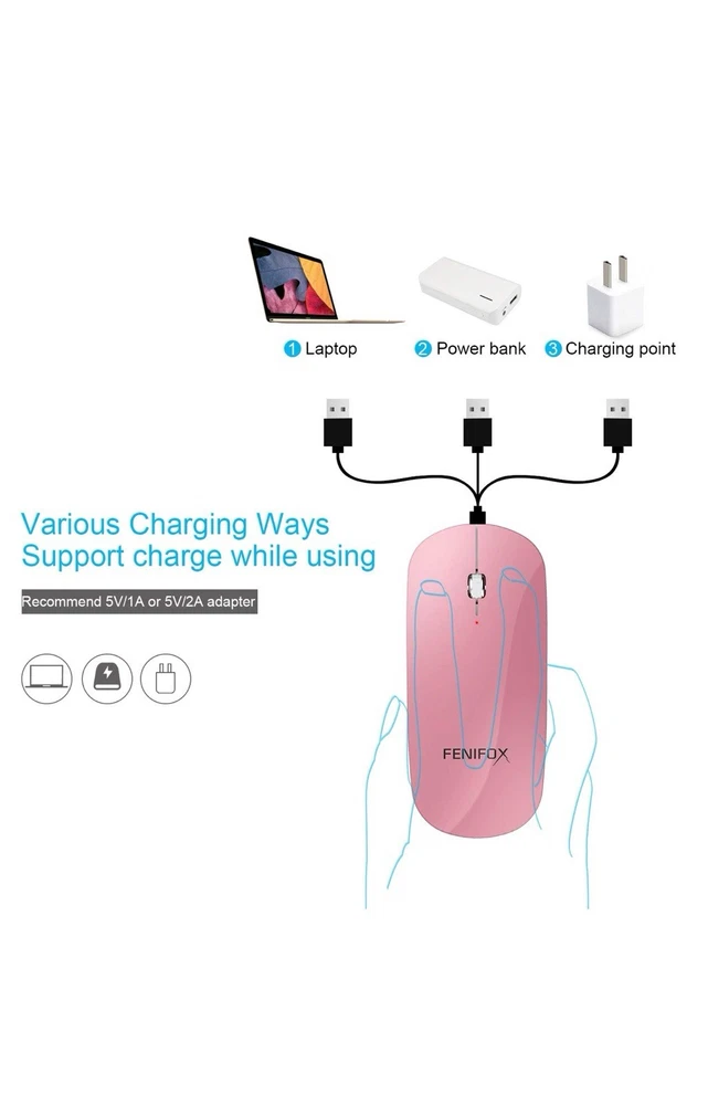 📝 Item Description: Brand: FENIFOX Color: Pink Type: Wireless Bluetooth & 2.4GHz USB Mouse (Dual Mode) Power Supply: Built-in rechargeable battery Charging Port: Micro-USB Condition: Good pre-owned condition. Fully functional. Cleaned and tested. ⸻ 💡 Features: • Ultra-thin and lightweight design – perfect for travel or commuting • Silent click buttons – ideal for office, library, or nighttime work • Dual-mode: connect via Bluetooth or USB receiver • Can be used while charging • Compatible with Windows, macOS, Android, Linux, Smart TV • Wireless range up to 10 meters ⸻ 📦 Includes: • 1x FENIFOX Wireless Mouse (Pink) • 1x Micro-USB charging cable ⸻ 🔍 Perfect for: • Travel • Students • Home office setups • Noise-sensitive environments ⸻ 🔑 Search Tags (SEO): fenifox mouse, slim wireless mouse, pink bluetooth mouse, rechargeable usb mouse, quiet mouse, silent click, laptop mouse, portable wireless mouse, computer accessories, office mouse
