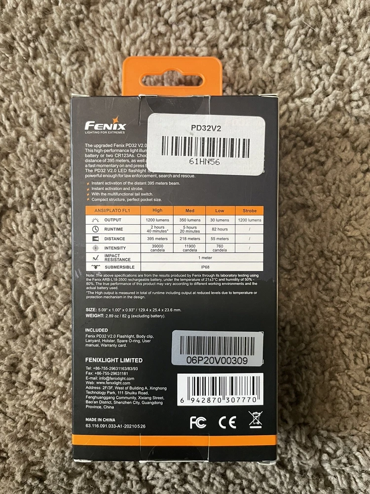 FENIX PD32 V2.0 ALL ROUND COMPACT FLASHLIGHT 1200 LUMENS 395 MAX METERS BEAM