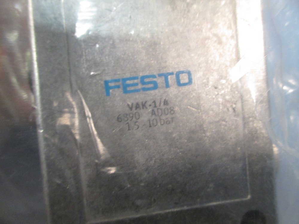 Vacuum Generator For sale is a FESTO Vacuum Generator VAK-1/4 6890. The unit may show slight signs of cosmetic wear from the previous owner such as scratching, discoloration, shelf wear, paint chipping and/or other markings that should not impact the unit's performance. Overall the unit appears to be in excellent, new, ready to use condition. The unit includes everything shown in photos. Thank you for looking and please let us know if you have any questions. eTech Surplus Rochester, NY Shipping: Charged according to location. Please note that eBay charges sales tax, we do not. We at eTech Surplus strive to honestly and accurately describe each item we sell. Please feel free to contact us with any questions. International Buyers - Please Note: Import duties, taxes and charges are not included in the item price or shipping cost. These charges are the buyer's responsibility. Please check with your country's customs office to determine what these additional costs will be prior to bidding or buying.