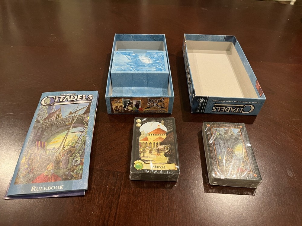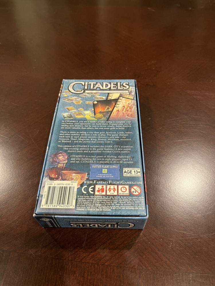 FFG Citadels Board Game with Dark City Expansion 2nd Edition Sleeved Exc Condition