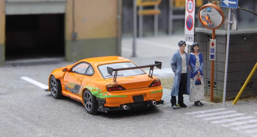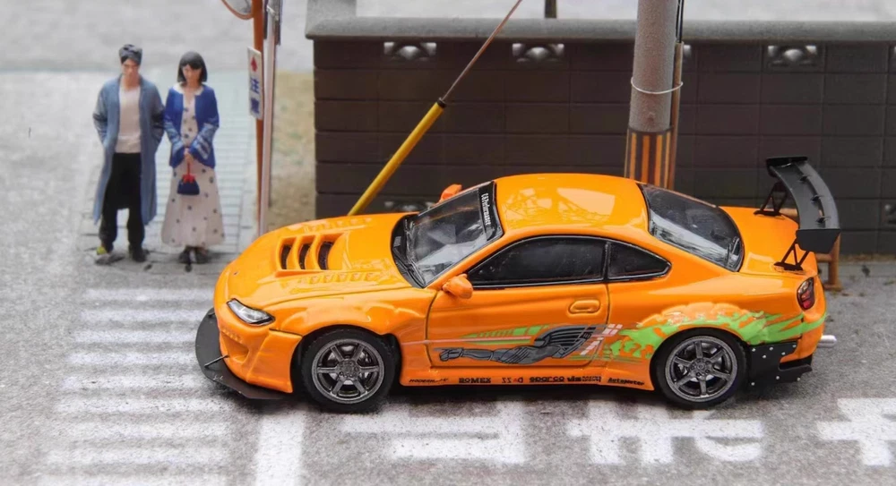 FH 1:64 JDM FNF Orange Silvia S15 Racing Sports Model Diecast Metal Car