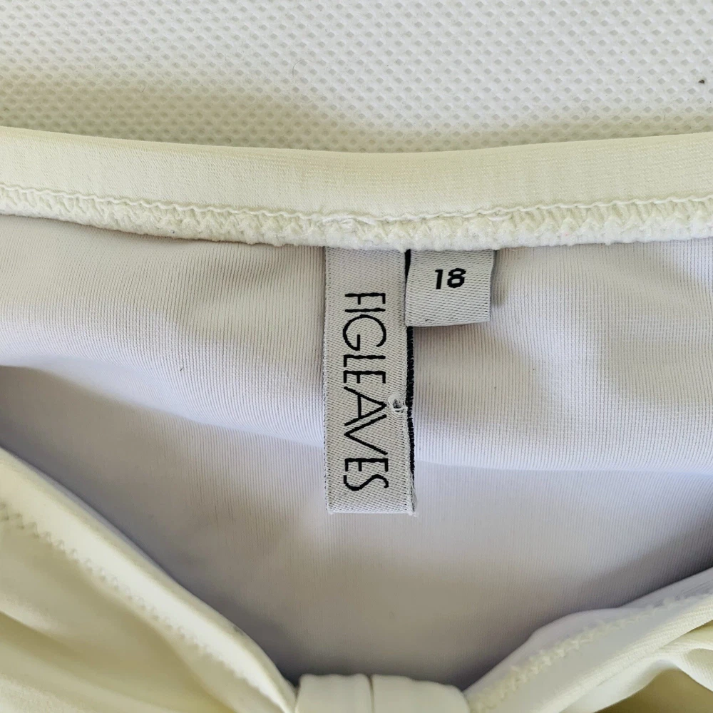 - Fig Leaves One Piece Swimsuit Women 18 White V-Neck Bow Cutout Built In Bra Can be off shoulder Nylon Elastane See photos to c ompare your personal measurements to the garment's measurements to ensure proper fit. Great preowned condition. No flaws or stains. FAST Shipping! 1-3 business days. Offers welcome! Tags: everyday fashion stylish trendy classic spring summer fall winter seasons apparel comfy comfortable easy to wear classy casual favorite y2k 80s 90s beach beachy coastal beachy vacation vacay travel resort pool swim swimming florida tropical island cruise wear bright cruising wardrobe seaside ocean seashell mermaid lagenlook relax nautical nature summertime water waterfall lake lakeside surf turf boating tanning yacht sailing sailor sunbathing swimmie bathing set matching versatile essential