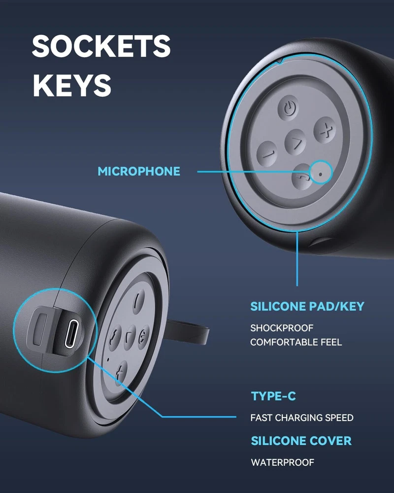 FIKDCMJ Bluetooth Speakers,Portable Wireless Speaker with 24H Playtime,IPX4 Wate Features: 【Clear&Delightful Sound】The subtle little body delivers a stunning sound. Well made for distortion-free sound, the Bluetooth speaker has loud highs, a crisp midrange and full bass to put you in the zone!The built-in microphone allows for hands-free phone calls 【Portable speaker】: 3 inches high, 2.76 inches in diameter; comes with a lanyard and Type-C(Fast charging) , Long-life battery technology provides the Bluetooth speaker 24 hours of sublime music for leisure, entertainment, office, indoor, outdoor, hiking, beach, etc. 【Bluetooth V5.0】: The Bluetooth speaker has the latest Bluetooth 5.0 chip built in to ensure fast pairing and a stable connection. The built-in microphone provides high quality and convenient hands-free calls. The speaker can automatically reconnect to the last device used. 【IPX4 Practical Waterproof】: Splashproof, Rainproof, Dustproof, Sandproof;Perfect for the beach, poolside, car, boat & golf cart.IPX4 rated speakers are resistant to mild water spray and splashing, but cannot be partially or fully submerged in water. 【Effortless Connectivity】Bluetooth 5.0 ensures instant pairing and maintains a strong connection up to 33 ft. The package includes 1 waterproof Bluetooth speaker, 1 Type-C charging cable, and a quick start guide. It's a perfect gift for music lovers and tech enthusiasts alike. Features: 【Clear&Delightful Sound】The subtle little body delivers a stunning sound. Well made for distortion-free sound, the Bluetooth speaker has loud highs, a crisp midrange and full bass to put you in the zone!The built-in microphone allows for hands-free phone calls 【Portable speaker】: 3 inches high, 2.76 inches in diameter; comes with a lanyard and Type-C(Fast charging) , Long-life battery technology provides the Bluetooth speaker 24 hours of sublime music for leisure, entertainment, office, indoor, outdoor, hiking, beach, etc. 【Bluetooth V5.0】: The Bluetooth speaker has the latest Bluetooth 5.0 chip built in to ensure fast pairing and a stable connection. The built-in microphone provides high quality and convenient hands-free calls. The speaker can automatically reconnect to the last device uséd. 【IPX4 Practical Waterproof】: Splashproof, Rainproof, Dustproof, Sandproof;Perfect for the beach, poolside, car, boat & golf cart.IPX4 rated speakers are resistant to mild water spray and splashing, but cannot be partially or fully submerged in water. 【Effortless Connectivity】Bluetooth 5.0 ensures instant pairing and maintains a strong connection up to 33 ft. The package includes 1 waterproof Bluetooth speaker, 1 Type-C charging cable, and a quick start guide. It's a perfect gift for music lovers and tech enthusiasts alike. eBay integration by