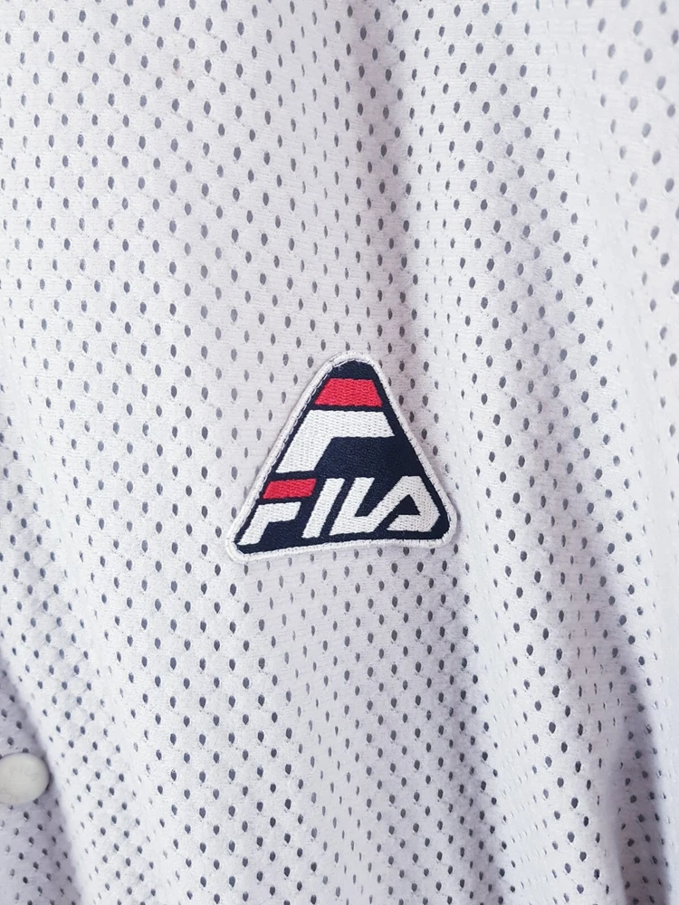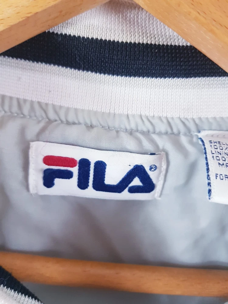 Country/Region of Manufacture: Unknown Features: Full Zip, Hooded, Pockets Occasion: Casual Size: L gtin13: Does not apply Colour: Grey Size Type: Regular Outer Shell Material: Nylon Style: Rain Coat EAN: Does not apply Performance/Activity: Walking Type: Jacket Brand: FILA Theme: Outdoor, Sports Insulation Material: Polyester Lining Material: Nylon Model: N/A Season: Autumn, Spring, Winter Closure: Button, Zip Vintage: Yes Fabric Type: Softshell Department: Men