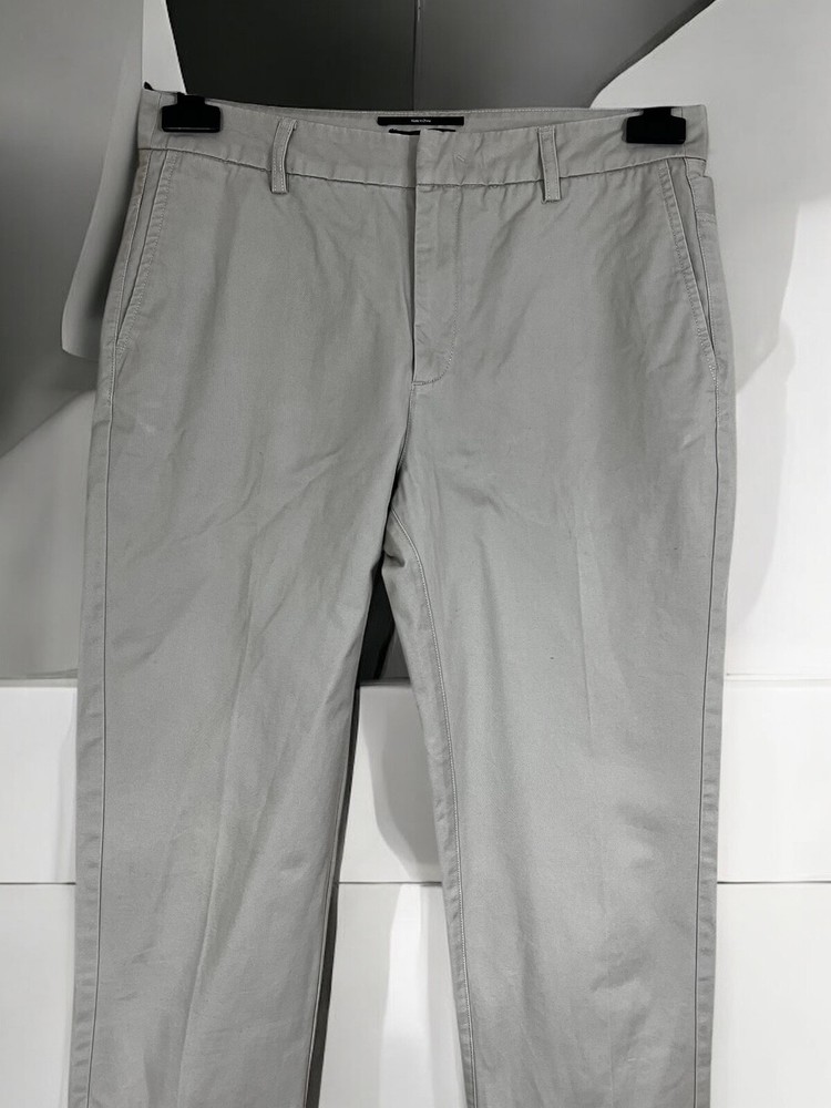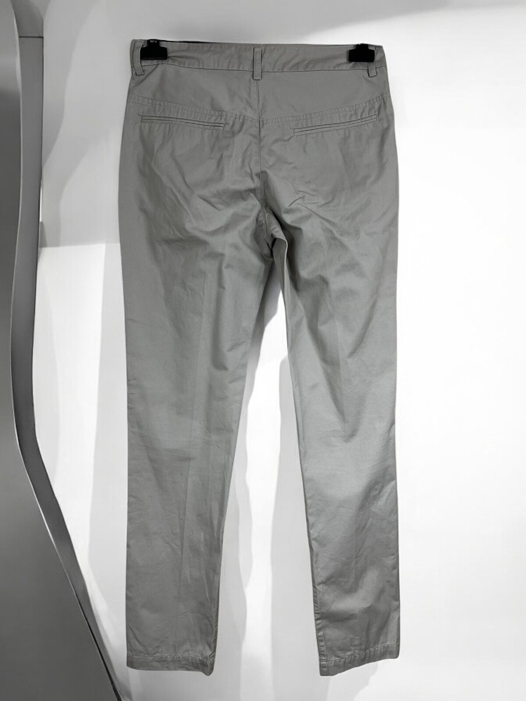 Crafted with a blend of cotton and linen, these gray chino pants from Filippa K offer both comfort and durability. Tailored for a regular fit with a straight leg style, the pants provide a classic look suitable for a variety of occasions. The flat front design, combined with a zip and button closure, creates a smooth silhouette that's ideal for travel, casual outings, or business settings. The size S pants have a 30-inch waist and a 32-inch inseam, ensuring a perfect fit for those who prefer their clothing with a trim and tailored aesthetic. Embrace the simplicity of these solid-patterned trousers as they effortlessly enhance your wardrobe with their versatile appeal and superior craftsmanship. Measurements: Waist: 40 cm Length: 108 cm Inseam: 83 cm Leg opening: 16,5 cm Front rise: 26 cm Back rise: 38 cm Feel free to make me any reasonable price offer.
