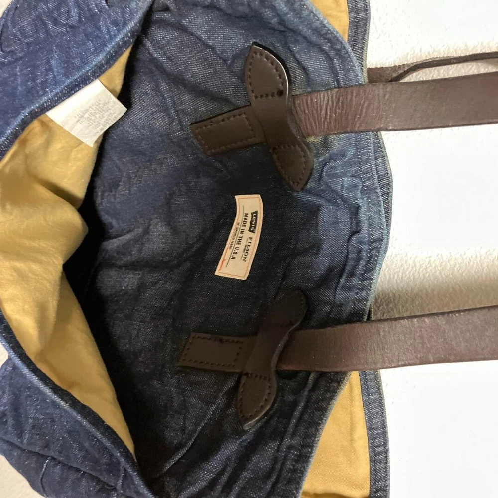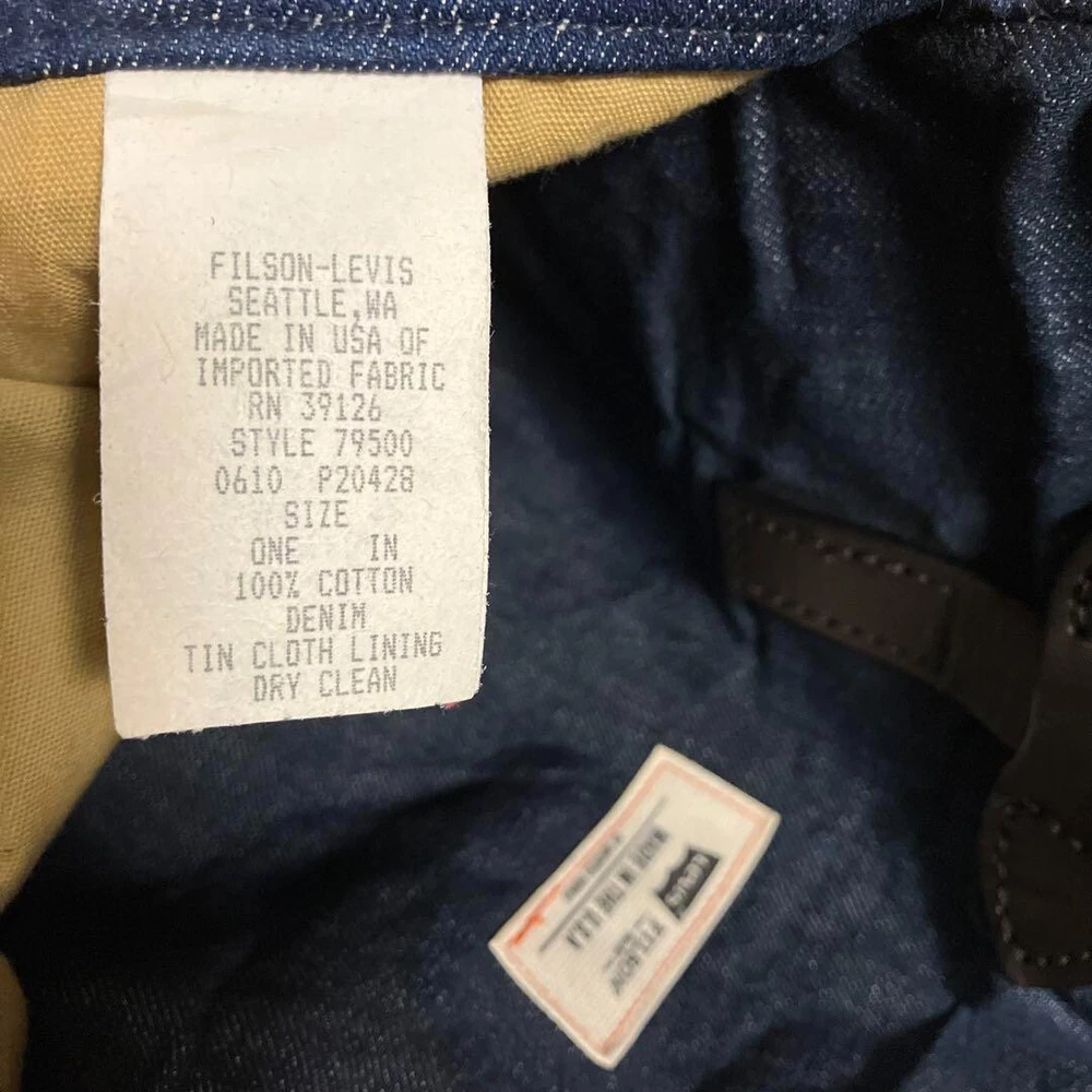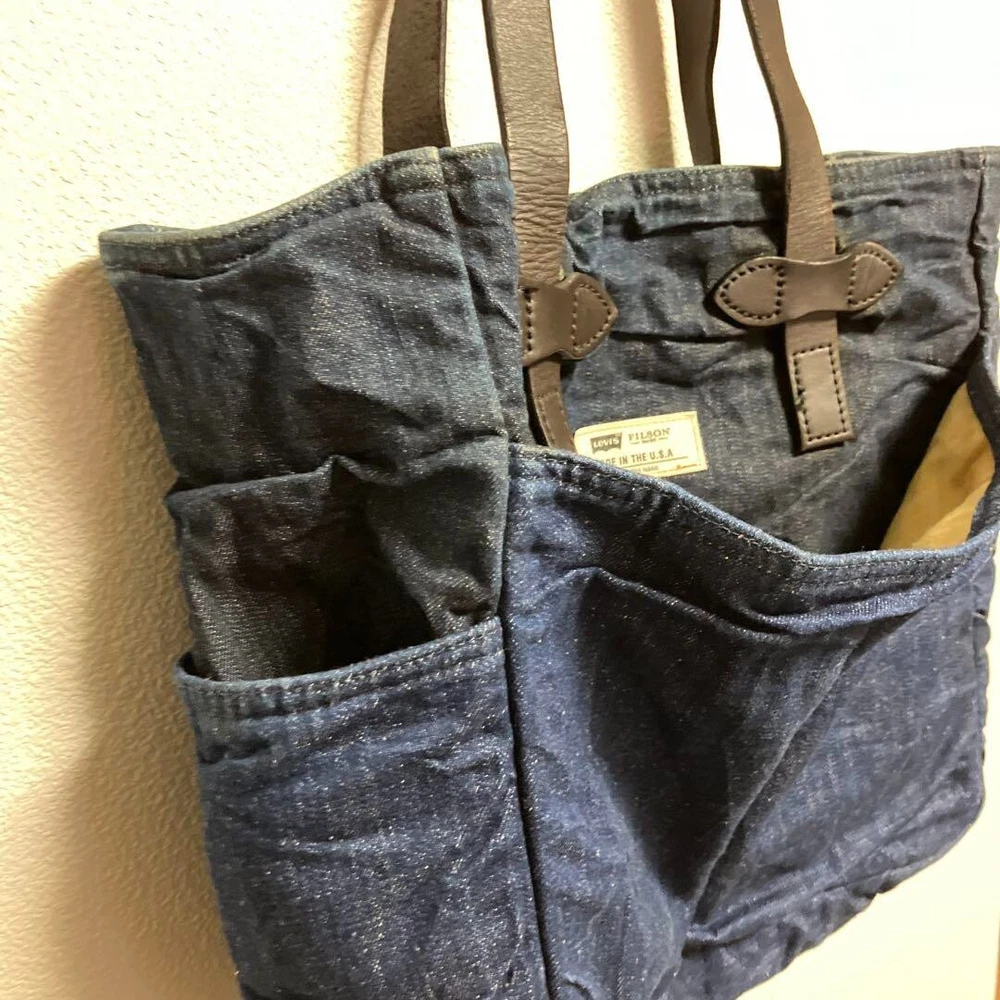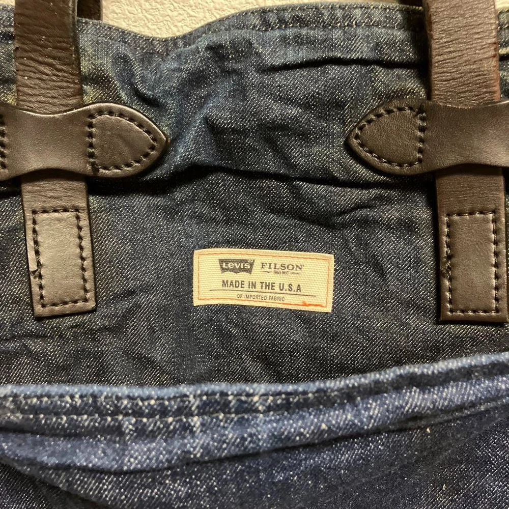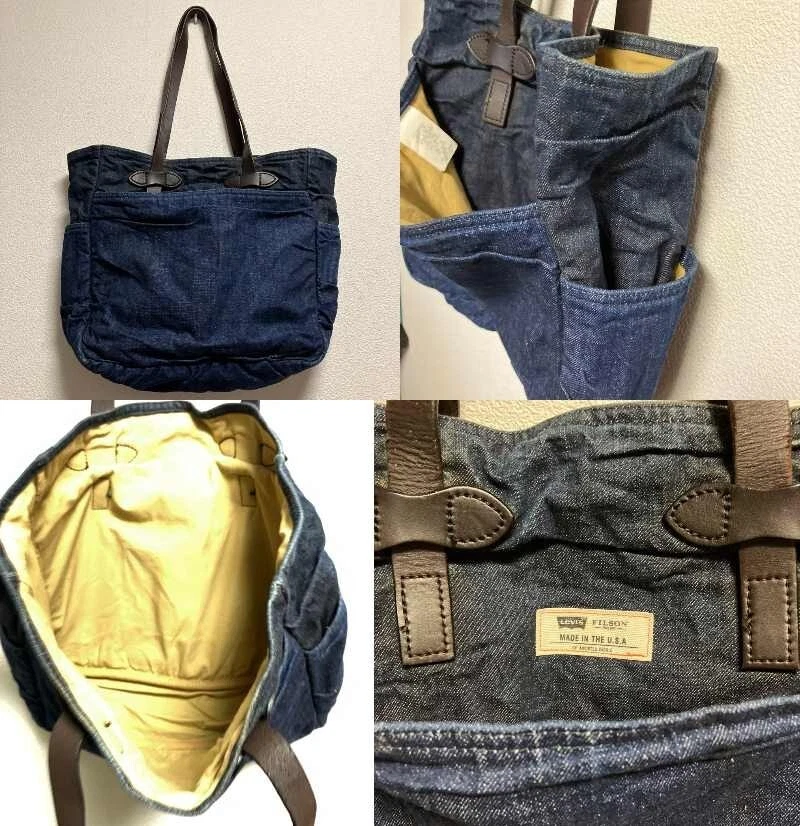 FILSON x Levi's Denim Cotton Tote Bag Men's Brown Leather Strap made in USA Description Item Condition : Used There is some fading on the bottom corners, but I think it is in good condition for a used item. Date: circa 2010 Specifications: tote bag Material: Denim/cotton fabric (The exterior is made of two different types of Levi's denim, one on the outside and one on the inside. The interior lining is made of Tin Cross Cotton for waterproofness) Handles are leather Size: Length 35 cm Width 34 cm Gusset 13cm A4 size can be stored. Please allow for possible variations due to amateur measurements. Shipping Handling Time: 5 business days We will ship your item on week day from Japan. Standard Shipping with tracking number by FedEX or DHL or Japan post. We will ships within 5 business days after receiving cleared payment. ※Business days are not include Saturday, Sunday and National holidays. Package We pack items carefully and send them from Japan prompthy. You should have no concern about shipment. International Buyers - Please Note: Import duties, taxes, and charges are not included in the item price or shipping cost. These charges are the buyer's responsibility. Please check with your country's customs office to determine what these additional costs will be prior to bidding or buying. Thank you for your understanding.