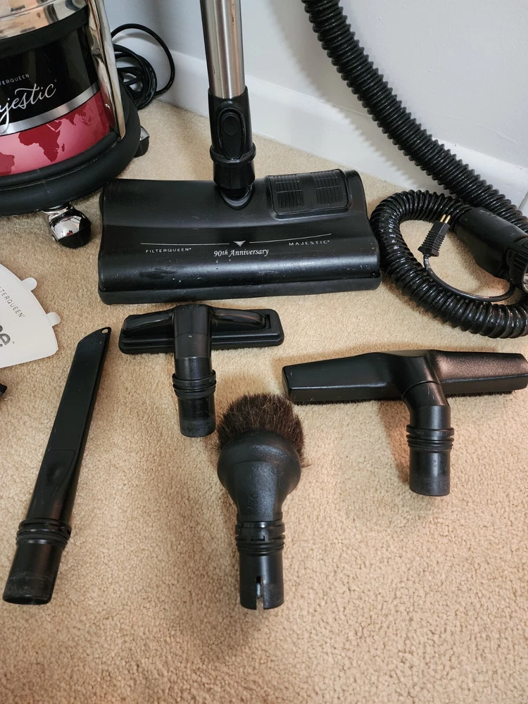 Filter Queen Majestic. -Pre-Owned- Excellent Cosmetic & Working Condition! -VACUUM TOOL ATTACHEMENT RING BROKEN PLEASE SEE PICTURES.. -Fully Tested!- Includes Everything You See in the Photos- No Other Accessories if Not in Photographs - Free Shipping in the Lower 48 States of the United States - Will NOT ship to Alaska, Hawaii, or Puerto Rico- Will ONLY Ship FedEx or UPS where Delivery is Available- - International shipping available using the International Shipping Program ONLY-