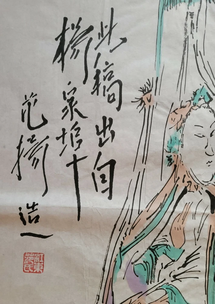 Vintage Chinese Hand Painted Watercolor Wall Hanging Scroll Painting Signed