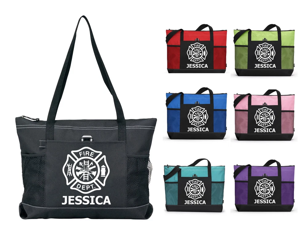 FIRE DEPT MALTESE SIGN WITH NAME CUSTOM MADE ZIPPERED TOTE MADE BY GEMLINE PLEASE BE SURE TO INCLUDE THE NAME FOR YOUR DESIGN AT CHECKOUT, THANKS! YOUR CHOICE OF COLOR TOTE COLOR VERY NICE AND DURABLE GREAT TO USE FOR OVERNIGHT BAGS, PURSES, TRIPS TO THE LAKE OR BEACH, CAMPING, SPORTS BAG, GYM AND SO MUCH MORE THE DESIGN IS HEAT PRESSED VINYL AND WILL BE DONE IN WHITE. BAG SPECS: 600-denier polyester 29½" Black webbing shoulder straps Zippered main compartment Front pocket with pen loop Two side mesh pockets Back panel is Black 20"W x 14"H x 4"D If you have a design request feel free to send us a message. We will work to see what we can do for you. Thanks! We try to ship out our items as quick as possible, but with made to order items it could take up to 5 days for the item to be completed and shipped. We thank you for your patience. DESIGN MAY BE SLIGHTLY ENLARGED TO SHOW DETAIL. DESIGNS WILL NOT EXCEED 6.5 INCHES EITHER IN WIDTH OR LENGTH. Be sure to fully examine all pictures closely and read auction completely prior to placing a bid. If you have any questions please be sure to contact me and I will do my best to answers them. I do combine shipping! Please note that our post office is closed on Sat & Sun so we can only ship Mon-Fri. Paypal is the only form of payment we accept at this time. If ever there is a problem please contact us prior to leaving bad feedback. We strive for a 5 star rating. Thank You :-)