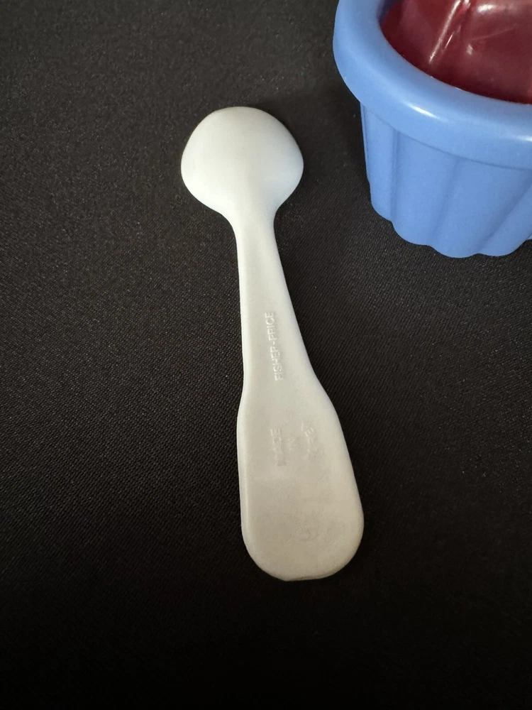 FISHER PRICE FUN FOOD JELLO SQUARES CUP DESSERT & FP WHITE FLOWER SPOON HTF