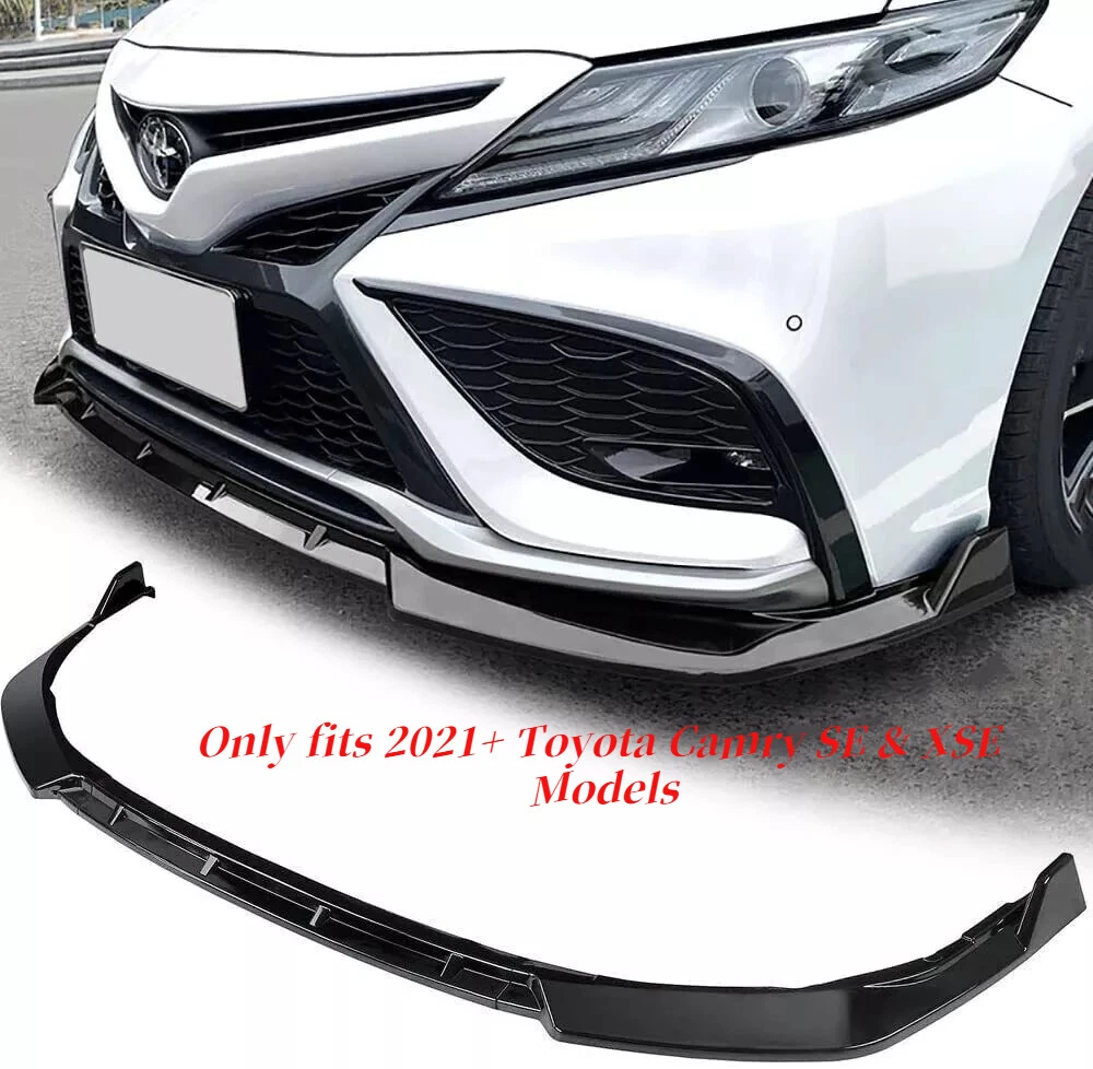 FITS 2021-24 TOYOTA CAMRY SE XSE PERFORMANCE STYLE GLOSSY BLACK FRONT BUMPER LIP FITS 2021+ TOYOTA CAMRY SE & XSE PERFORMANCE STYLE GLOSSY BLACK FRONT BUMPER LIP SPLITTER Fits ALL Models below: 2021+ Toyota Camry SE & XSE Models Will Not Fit Camry Models Before 2021, This Front Lip is for the Face-lifted Models Only! Will Not Fit LE/XLE Models Package Included: 1 Set of 3-Piece Performance Style Front Bumper Lip As Shown in Pictures. 100% Brand New Comes As 3 Separated Pieces, Hardware is Included. OEM Fitment with Pre-Drilled Holes for Easy Installation(Drilling is needed) Painted Glossy Black Finish Made of Durable & Light-Weight ABS Plastic Material Bring a More aggressive Front End to Your Camry Immediately Protect Bumper From Scratching & Improve Sporty Appearance All at Once *Installing Template is NOT Included, Professional Installation Is Highly Recommended*