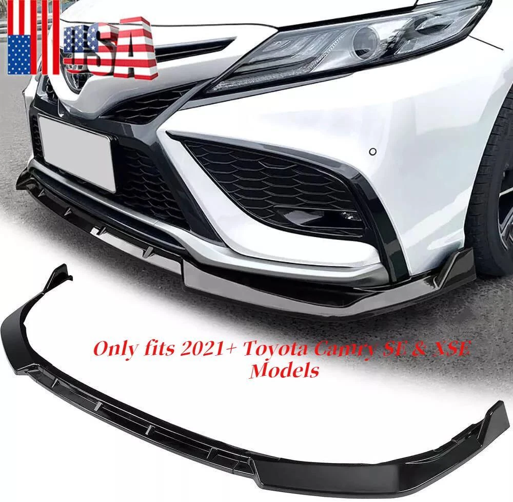 FITS 2021-24 TOYOTA CAMRY SE XSE PERFORMANCE STYLE GLOSSY BLACK FRONT BUMPER LIP FITS 2021+ TOYOTA CAMRY SE & XSE PERFORMANCE STYLE GLOSSY BLACK FRONT BUMPER LIP SPLITTER Fits ALL Models below: 2021+ Toyota Camry SE & XSE Models Will Not Fit Camry Models Before 2021, This Front Lip is for the Face-lifted Models Only! Will Not Fit LE/XLE Models Package Included: 1 Set of 3-Piece Performance Style Front Bumper Lip As Shown in Pictures. 100% Brand New Comes As 3 Separated Pieces, Hardware is Included. OEM Fitment with Pre-Drilled Holes for Easy Installation(Drilling is needed) Painted Glossy Black Finish Made of Durable & Light-Weight ABS Plastic Material Bring a More aggressive Front End to Your Camry Immediately Protect Bumper From Scratching & Improve Sporty Appearance All at Once *Installing Template is NOT Included, Professional Installation Is Highly Recommended*