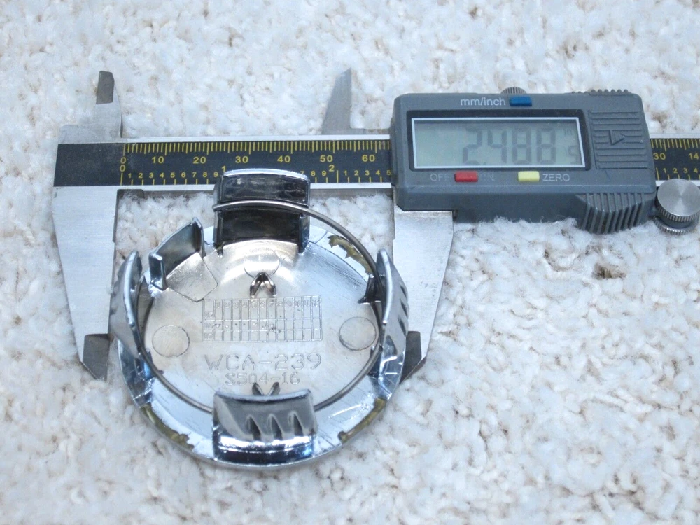 Outside Diameter: Approx. 2- 1/2 inches Modified Item: No Seller Notes: “Miner marks / Good clips” Color: Chrome Emblem Type: Toyota Brand: Unbranded UPC: Does not apply Finish: Glossy OE/OEM Part Number: WCA-239 Manufacturer Part Number: WCA-239, S504-16 Number in Pack: 1 Placement on Vehicle: Front, Left, Rear, Right Type: Wheel Center Cap gtin13: Does not apply Material: Chrome, Plastic Custom Bundle: No Features: Car Wash Safe, Easy to Install, Lightweight