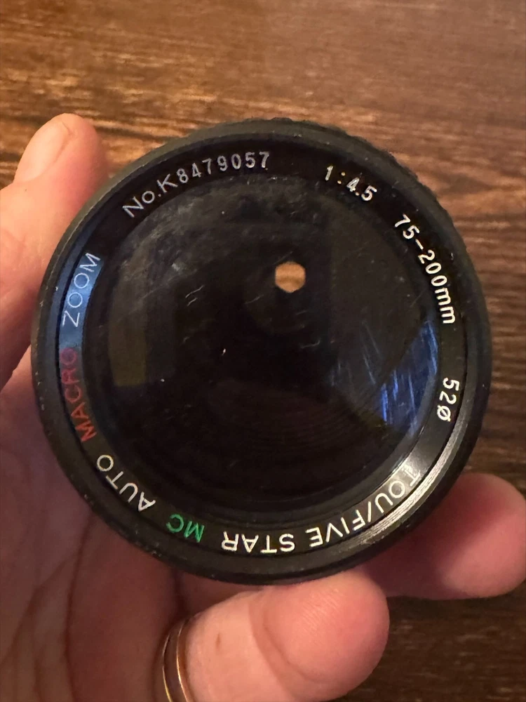 Maximum Aperture: f/4.5 Mount: Minolta M/MD Type: MACRO ZOOM, Macro/Close Up MPN: Does Not Apply Compatible Brand: For Minolta Brand: FIVE STAR Country/Region of Manufacture: Japan Compatible Filter Size: 52 mm Focal Length: 75-200mm Focus Type: MANUAL