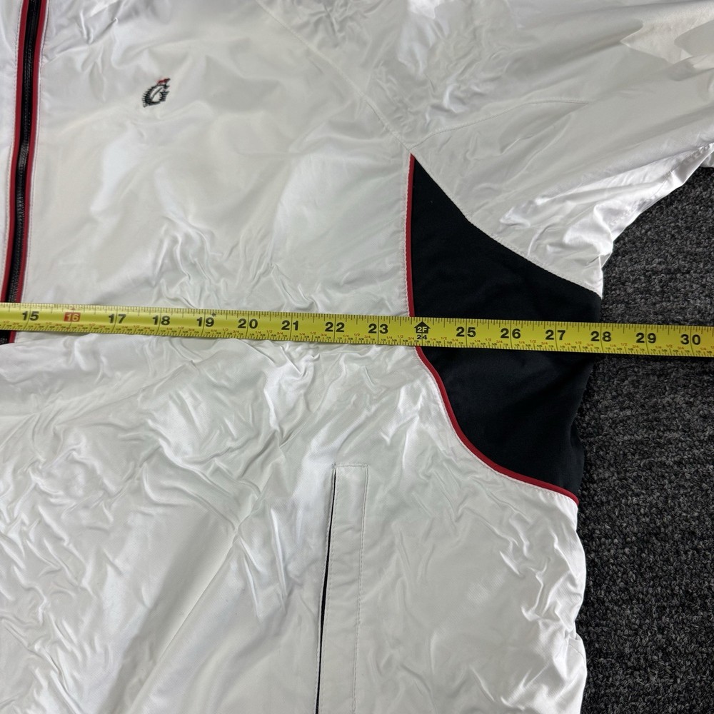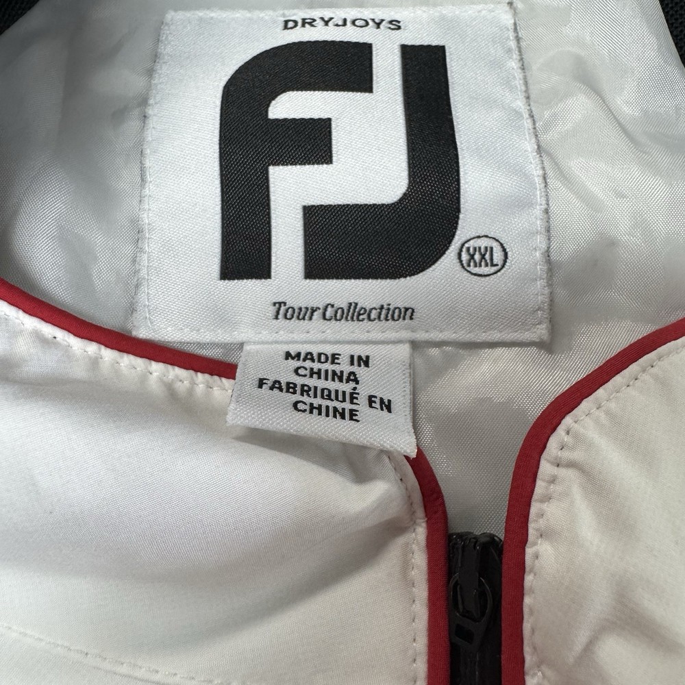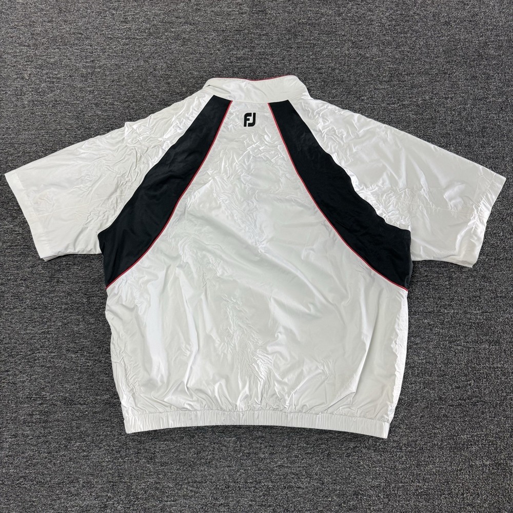 The FJ Footjoy Dryjoys Tour Collection 1/2 Zip Short Sleeve Golf Windbreaker in size 2X is a stylish and functional jacket designed specifically for golf enthusiasts. Made from 100% polyester, this white jacket features a solid pattern and a short length for ease of movement. With a zip and pullover closure, it is perfect for traveling and casual wear. The lightweight design and all-season features make it an ideal choice for outdoor activities, while the classic FootJoy brand adds a touch of sports-inspired style. Ideal for those who appreciate quality and performance in their clothing choices. The photos are the BEST indication of the condition please use the presented photos before purchasing the item. Thank you for checking out our page and let us know if you have any questions!