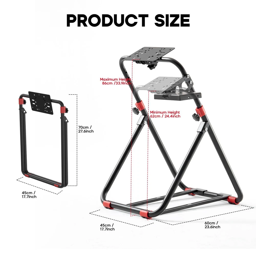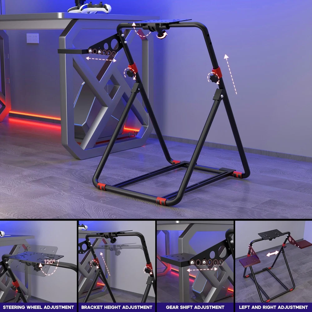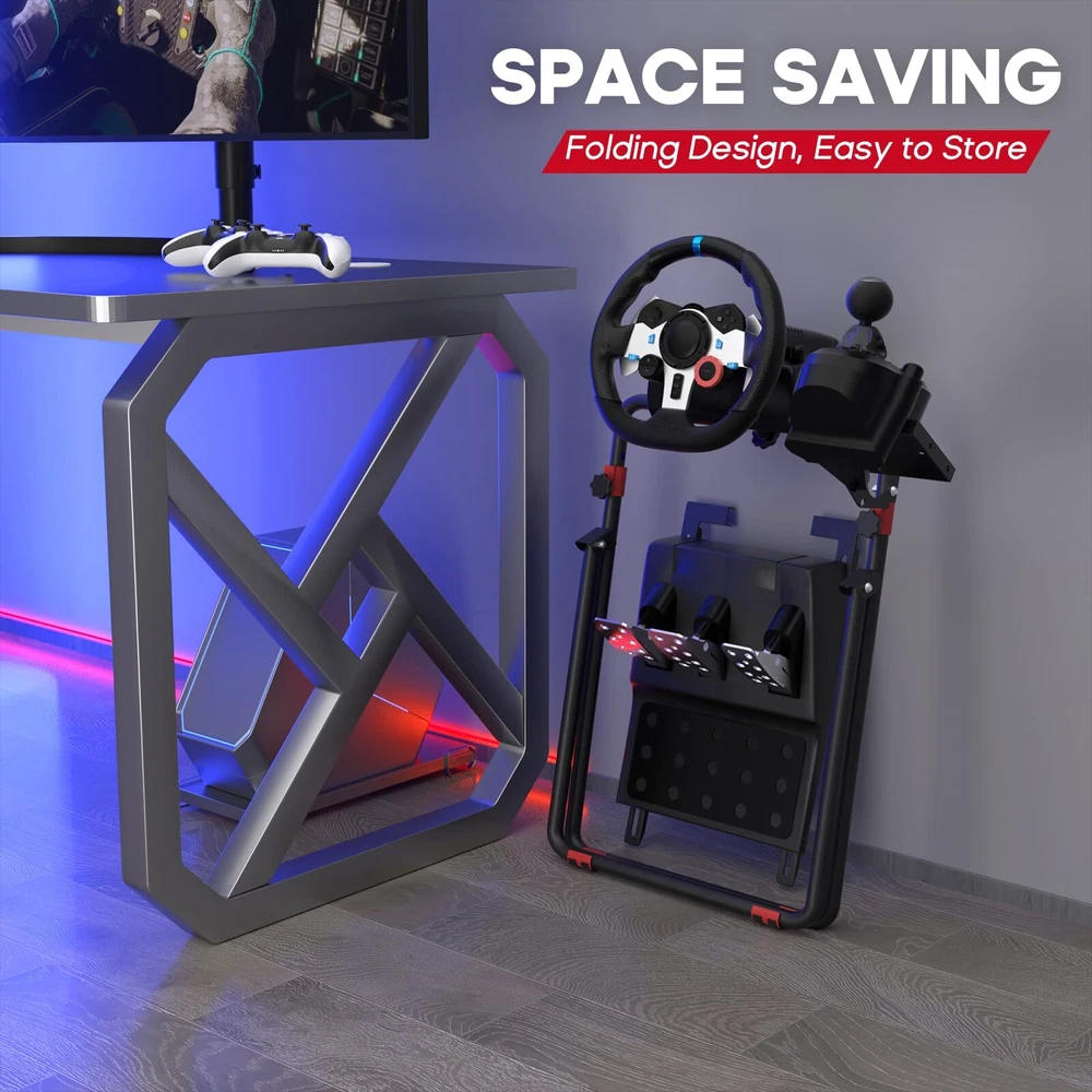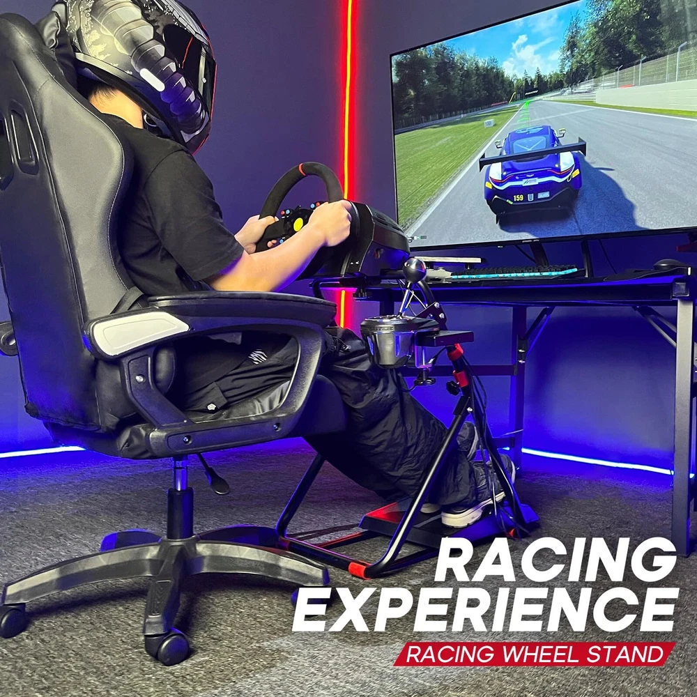Wheel、Pedals and Shifter Not Included:STAND ONLY Stable Structure: Racing Wheel Stand is made of anti-rust materials and alloy steel, we always believe that only by bringing you high-quality products, we can get you recognition ! We have been focusing on design and production for a long time, constantly improving the quality Compatible Most Model: Racing Simulator Cockpit compatible most racing wheel. Suitable for Logitech G29 G920 G923 G27 G25 and for Thrustmaster T248X / T248 / T300RS GT / T300RS / T300 Ferrari / TX / T-GT / TS-PC / TS-XW / Ferrari 458 / T150 / T80 / TMX / TMX PRO Good Giving: Racing sim stand are suitable for adults. Your family or friends will be surprised when they receive this awesome racing stand. Take it home and start a racing game with your family in weekend! When the Festival comes, it is also a very good idea gift Please tell us any problem or queries, and we will reply back with our answers within 12 hours
