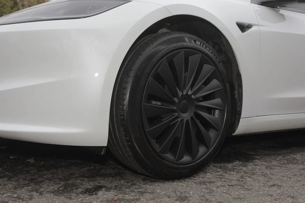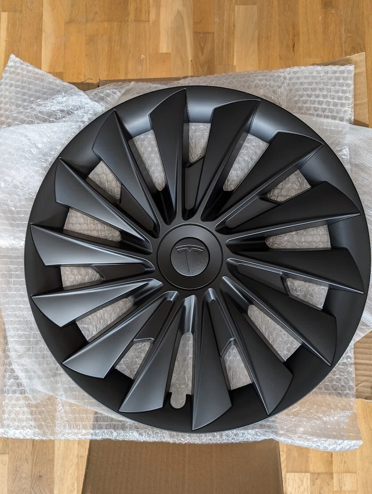 UK Exclusive Tesla Model 3 2024 HIGHLAND Matt black Induction Covers 4 x 18 Inch Wheel Covers / Hub Caps. Includes Tesla Logo. First in the UK for this Cover Style!! Will only fit a 2024 Model 3 HIGHLAND. Do not purchase if you have the classic Tesla. If your Model 3 does not have a TV screen for the back seats this will not fit. Tranforms the looks of your Tesla in 5 minutes: Matt Black - Matches Perfectly the other Matt Black trims on the wheel arches, windows, wing mirrors, handles etc. Logo Choice! Will be dispatched with the default MATT Tesla logo, however if you want the white Tesla logo please put a note on the order. Closest Match to the Tesla OEM Induction Wheel No Ugly Perforated Central Section Check out my ebay feedback - lots of happy owners saying how it transformed their Tesla Search electricwheels.store for more styles, pictures and free delivery UK Stock Means UK Stock Every wheel cover box is opened and inspected for damage before it is dispatched. High Quality -sold from a UK Private Seller Beware of unreputable eBay sellers who steal our photos (taken on the front drive of my house with my Tesla) and pretend to sell the same quality covers as we do. Fast Dispatch I will dispatch fast on a next day delivery service. Subject to the carrier doing their job you should get your hubcaps the next working day. Will it fit ? If you have a Tesla Model 3 Highland, with wheel covers like below this will 100% fit High Quality Includes the Tesla decal for the centre of the wheel cover - gives it the OEM Feel Designed to be aerodynamically efficient . Looks great but also great range. Not like the other "Photon" wheel covers where there are large holes on the wheel so you can see the silver alloy. These cover almost all the alloy - giving a performance look to the exterior of the car. These are not cheap "Halfords" type generic hub caps. 100% Designed for the Tesla Model 3 2024 (Highland) wheels. Beware of the cheaper alternatives, checkout the Tesla Facebook groups where owners tell stories of the alternatives falling off Just like the factory wheel covers, all 4 covers are identical. This means that the curve of the spokes will be towards the front on one side and the back on the others. This is typical of how wheel covers are sold. Protect your Tesla These wheel covers cover the entire alloy. Unlike the OEM wheel covers and cheap ebay covers which leave the edge exposed Because they cover the whole wheel any kerb rash will be taken up by the cover and not the underlying alloy No expensive end of lease charges when you hand back damaged alloys - put the OEM covers back on What's in the box ? 4 Hub Cap / Wheel Covers - Securely Packaged in Bubble Wrap Tape to protect alloy ( optional to fit ) Tesla “T” Logos Contact us We can be contacted at any time through messages if you have any questions, comments or product requests. We will respond to you within 24 hours and do our best to help you out! We encourage our customers to contact us with any questions or concerns! We'd like to be sure you are completely satisfied with your purchase.