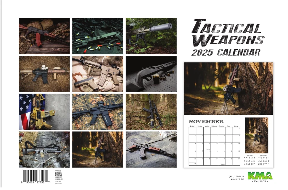 2025 TACTICAL WEAPONS WALL CALENDAR The BIGGER BETTER WALL CALENDAR 16 MONTH CALENDAR STARTS SEPT 2024 PERFECT WHITE ELEPHANT GIFT! FREE FAST SHIPPING FROM USA! MSRP $25.99 BRAND NEW AND SEALED! PRINTED ON HIGH QUALITY ART PAPER! INCLUDES FREE POSTER! Perfect gift for any Military, Police or Gun enthusiast! Large calendar grid to keep important dates! Includes FREE 12 month wall poster! The 2024 Tactical Weapons calendar features 16 months of tools of the trade for the warriors. This big DELUXE (17" x 28" when hung up) calendar also features a large calendar grid, making it a great way to keep track on range and training days. Each calendar also includes a bonus poster, that is also a second 12 month calendar giving you two calendars for the price of one! 16 MONTH CALENDAR (FROM 09/25 - 12/26) GIANT 17'X 28' WALL CALENDAR LARGE GRID MAKES KEEPING IMPORTANT DATES A BREEZE BONUS 12 MONTH CALENDAR POSTER INCLUDED gasser,hot rods, grease monkey , car racing, snap on tools, harley-davidson, mooneyes, chevy camaro, ford mustang, vintage cars, pontiac, model t ford, gmc, , mopar racing, hot girls, i love strippers, sexy, swimsuit calendar, sports, illustrated, punk rock, heavy metal, gangster, lowrider, lil homies, nascar, dale earnhardt, diecast nascar, mechanic, dewalt tools, mac toools , smith and wesson, glock, scarface, moon eyes, rat fink, rockabilly, greaser, low and slow, choppers, orange cost, west coast choppers, famous clothing, sullen clothing, joker, sullen clothing, harley-davidson, shelby mustang, the bandit, cheech and chong, chicano, motorcycle club, car club, smith and wesson, ar15, black rifle coffee, tactical, hot girls, ammo can, hunting, deer hunting, police, law enforcement military, army, marines, navy, coast guard, vetrans, pow, mia, gun safe, handgun safe, gun cleaning kit, cheap gift, gift under 20, glock 19, glock, glock 43x, ruger, firearms, shooting supplies