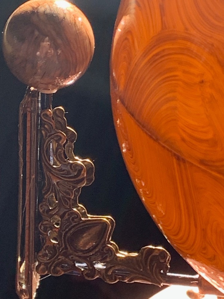 This is a student's model made of plastic and metal which has been completely disassembled and re-imagined as if it were found in some eccentric's Victorian library. The base has a faux finish appearance of burled wood with ornate brass fittings. The planets have been distressed and antiqued to look like wood and ceramic. The labels have been painstakingly put together (each require 9 different steps by hand) and because of the absurd amount of time and effort required, these will be limited, keeping the prototype in our own hundred-year-old library, before retiring this model we call "The Sherlock." This model normally requires 2-3 weeks before delivery - ask if you need it sooner. This is approximately 9.5" tall and extends about 18" out from the center. It's big and showy. Your kids will fight over this when you die. It runs on 4 AA batteries (included.) The model is not intended as a nightlight - it automatically shuts off after about 15 minutes. The four smaller planets rotate at a faster speed than the four larger planets which creates an impressive display. Video can be found here: https://youtu.be/TGur_BeoqeM Our models have appeared in Star Trek Discovery, Picard, and Snowpiercer. We have shipped all over the world with rave reviews. You will not find these offered by anyone other than Omaha Orrery.