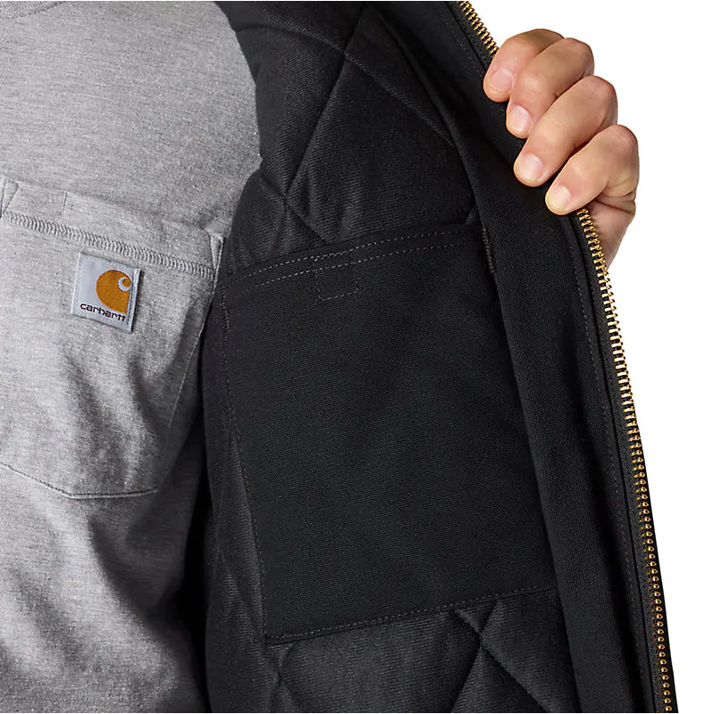 Details Black Long Sleeves Attached Hood 2 Hand Pockets 1 Open Inner Pocket 1 Inner Zip Pocket Zip Down Front Loose Fit Rib-Knit Hem & Cuffs 100% Cotton Machine Washable Style #106673BLK___001__S