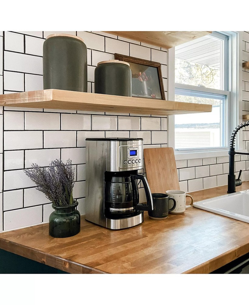 No more coffee runs. Have the best cup right at home with this fully programmable 14-cup brewer, which features a Brew Strength Control, so you can cater each cup exactly to your preferences. From having a pot ready when you wake up to allowing you to pour a cup mid-brew to offering 1-to-4 cup settings, this coffee maker knows you like to keep your options open. Model DCC-3200. Features Approx. dimensions: 7.75"L x 9"W x 14"H Even hotter coffee with the same rich flavor! Select regular or bold coffee flavor with the Brew Strength Control Fully automatic with 24-hour programmability, self-clean & auto-shutoff up to 4 hours 1-4 cup setting lets you choose how much you want to brew Brew Pause feature pours a cup mid-brew 14-cup glass carafe Gold tone permanent filter Charcoal water filter BPA-free design This product contains aluminum, nickel, chromium, manganese, iron and phosphorus and zinc