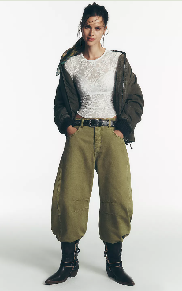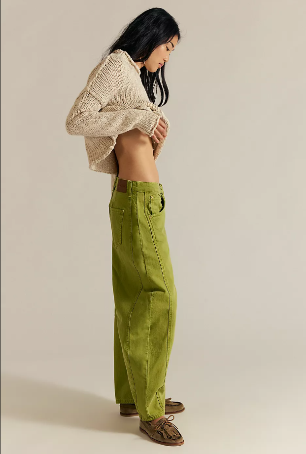 [FLASH SALE] FREE PEOPLE We The Free Good Luck Mid-Rise Barrel Jeans,Shadow Moss Product Highlights Rigid Denim Like your favorite vintage jeans, designed in a non-stretch denim. Mid-Rise Sits between the belly button and hips, below the natural waist. Part of a Collection Love this? Then you'll definitely want to check out the rest of the collection. Responsible Fibers This item was produced using at least 50% of a certified material sourced with social or environmental impacts in mind, such as recycled, organic, cellulose fibers and materials that have been responsibly sourced. show less Details Style No. 80799299; Color Code: 030 So bold barrel jeans from our We The Free collection featured in a mid-rise fit with subtle distressed detailing and wide-legs that taper at the ankle. Fit: Mid-rise, slouchy, relaxed fit, wide-legs, ankle-length; this style runs slightly large so we recommend sizing down one size Features: Button closure, rigid denim fabrication, belt loops at waistband, 4-pocket style, subtle distressing, tapered bottom hem, seam detail throughout Why We ❤ It: This playful pair of jeans is a fun silhouette to add to your denim collection — we recommend ordering your true size for a traditional fit, or sizing up for a low-slung, baggy style. We The Free Heritage inspired and lived-in staples. We The Free is an in-house label. Size + Fit Measurements for size 28 24 in Inseam: 26 in Hips: 44 in Waist: 32.50 in Rise: 12.12 in 29 in Contents Care Machine Wash Cold Contents 40% Recycled Cotton, 17% Cotton, 43% Lyocell Origin Import