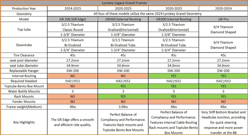 Lynskey GR Edge Gravel Titanium Frame Size Medium - Ideal for Rider whose height is between 5'6" to 5'8" with a stand over height at or above 29.8"(with riding shoes on) Note: Detailed geometry and fit can be found in photo images of frame Special pricing includes FREE 12 mm rear axle AND graphics upgrade of your choice. Options include Standard Black Decals, Etched Graphics, Anodized Graphics (choices include Gold, Purple, Light Blue, Dark Blue, or Acid rain (All colors together in a swirl Pattern, Picture pouring oil on water), or no graphics. Please mention you choice in the Notes or Message us after the Purchase. Full Specifications: Performance engineered 3AL-2.5V titanium tube set 3 water bottle mounts: Seattube, Top of Downtube, Underside of Downtube Tapered Headtube - Requires IS42 Upper Bearing and IS52 Lower Bearing Cable Routing/Guides Designed for Full Cable Housing 27.2mm Seatpost Diameter 12x142mm Rear Hub Spacing 34.9mm Band Clamp Diameter for Front Derailleur 68mm English Threaded BSA Bottom Bracket Shell Flat Mount Disc Brake Mount - (140mm Rotor native, 160mm Rotor requires adaptor) 700c x 45c Tire Clearance Wright style dropouts with replaceable aluminum hanger Replaceable Derailleur Hanger: DW-200 Includes Seatpost Collar Does not include rear Thru-Axle(see "Helpful Information" for details) Made in America - Chattanooga, TN Lifetime Warranty for you as the original purchaser See second image to view the geometry chart for the frame. See third image to view a comparison chart of our Gravel Line-up. Helpful Information Suggested Rear Axle Specifications 12 mm x 162-167 mm x 1.0 Thread Suggested Fork Specifications: 1-1/8" to 1.5" Tapered Steerertube 395mm Axle to Crown 45mm Rake Suggested Headsets for this Frame Cane Creek 40 Series IS42|52 Cane Creek 110 Series IS42|52 Chris King Dropset 2 WARRANTY All Lynskey Performance Titanium Bicycle Frames include a limited lifetime warranty against manufacturing defects for the original owner. By purchasing this frame through our Ebay store, we will register you as the original owner of the frame via our internal database. PAYMENTS Please see the Shipping, Returns, and Payments section for more details. SHIPPING & HANDLING All our frames are professionally packaged to help avoid any damage from negligent handling by a shipping courier. Please inspect the frame upon delivery and let us know if any damage is found within the first 3-5 business days of receiving the product. For Shipments outside of USA, please find out as much as you can about your import taxes in your own country before bidding on the item. As an eligible importer, you are responsible for any tax or any other importation fees. This frame will be shipped with "Signature Required" as bicycle frame boxes have a high theft potential if left unattended upon delivery. Once you receive the tracking number, you as the buyer will be able to log-in/create your FedEx account and Redirect the package to be held at a FedEx location for up to 10 days. This will allow you stop by the FedEx location at your convenience to collect the package. RETURNS & EXCHANGES You may return new, unused items within 30 days of delivery for a full refund of the price of the product; you will be responsible for the return shipping expense. All shipping costs will be subtracted from the amount refunded. Please make sure to package the frame carefully. We will inspect the item within 2 business days after it arrives at our facility. If the product arrives to us with damage, we will deduct an amount from your refund to cover the loss in the item's value. Please see the Shipping, Returns, and Payments section for more details. CONTACT US Please contact us through eBay if you have any questions on the items after you receive them, we will strive to provide a response within 1 business day. Please allow 48 hours for a response to your email during long weekends or holidays. Thank you very much! We hope you love your Lynskey Product and have had a great purchasing experience on Ebay. Get out and Ride! If we have met or exceeded your expectations, please leave positive feedback for us. The Lynskey Team