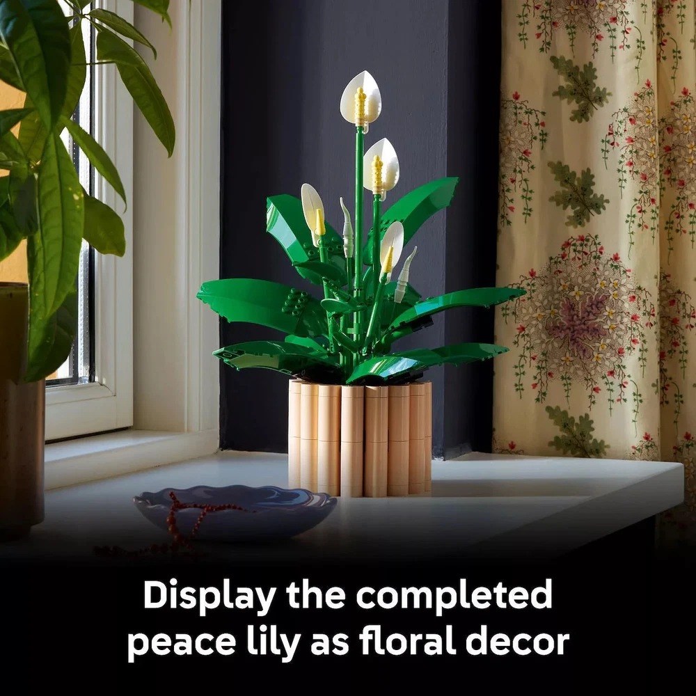 LEGO Botanicals Peace Lily 11504 Building Kit (474 Pieces) Bring a touch of serenity to your space with the enchanting LEGO Botanicals Peace Lily building kit, perfect for nature enthusiasts and creative souls alike. This delightful project allows you to craft stunning lilies in three life stages, complete with charming details like a carrot-spadix combo and a playful popcorn piece, transforming your surroundings into a tranquil oasis that will turn heads. FEATURES Build forever blooms with an immersive craft project for adults Artificial flowers decor with peace lilies in 3 stages of bloom Clever brick details including a recolored carrot piece and popcorn piece Room decor display for bedroom, office, or shelf Gift idea for adults for special occasions Digital building instructions available in the LEGO Builder app MATERIAL & CARE Plastic Wipe clean DETAILS LEGO building elements: 474 pieces 10.32"H x 11.1"W x 2.99"D Age: 18 years & up Model/style number: 11504 Imported SKU #38561951